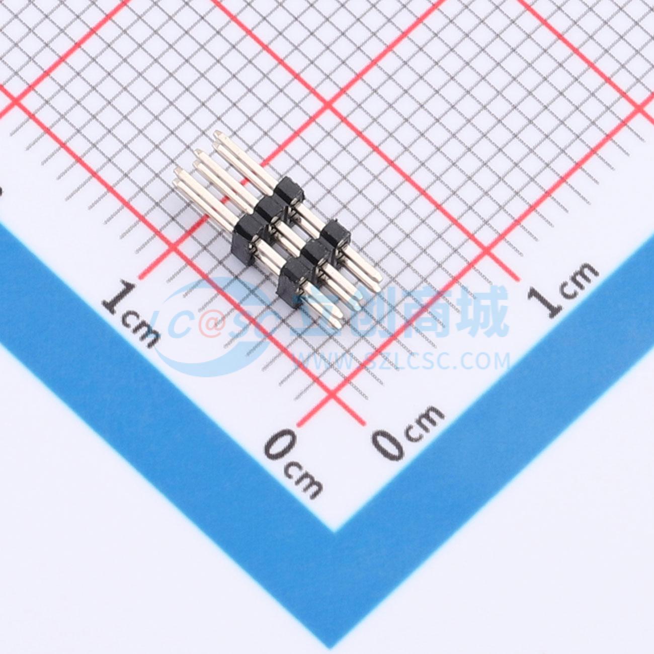 - 排针1.27mm直插 双塑双排 2x03P 4.0(1.0)2.0(1.0)2.3mm 针长10.3mm 镀金