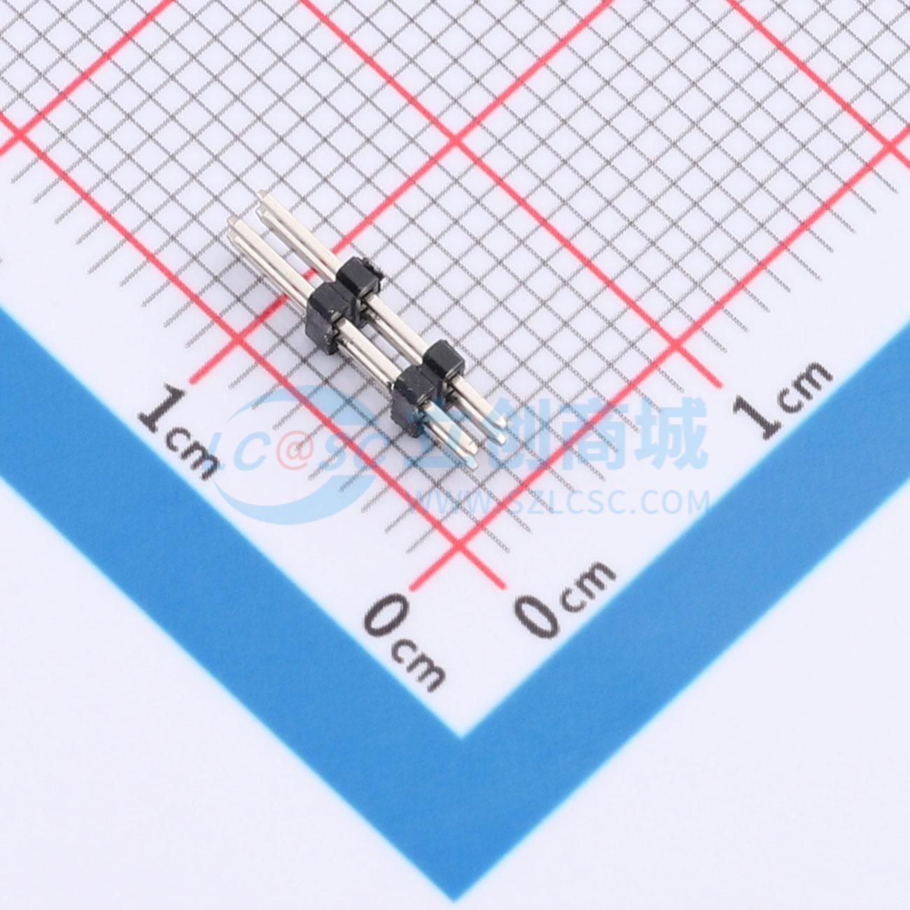 - 排针1.27mm直插 双塑双排 2x02P 4.0(1.0)3.0(1.0)2.3mm 针长11.3mm 镀金