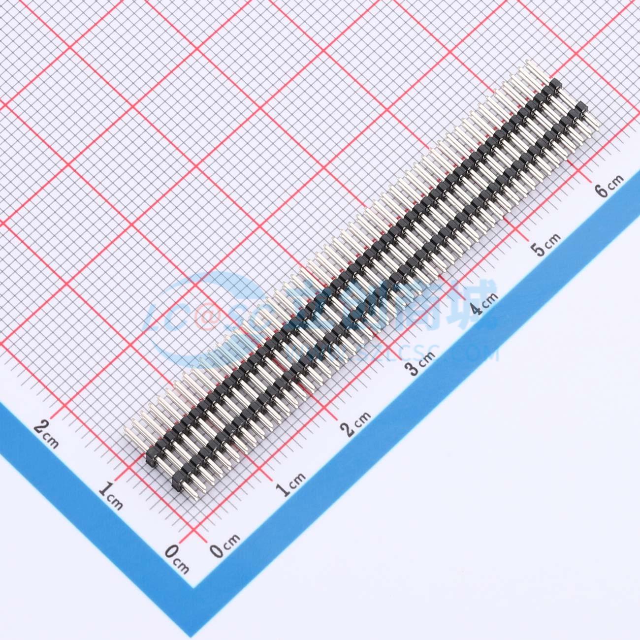 - 排针1.27mm直插 双塑双排 2x50P 4.0(1.0)3.0(1.0)2.3mm 针长11.3mm 镀金