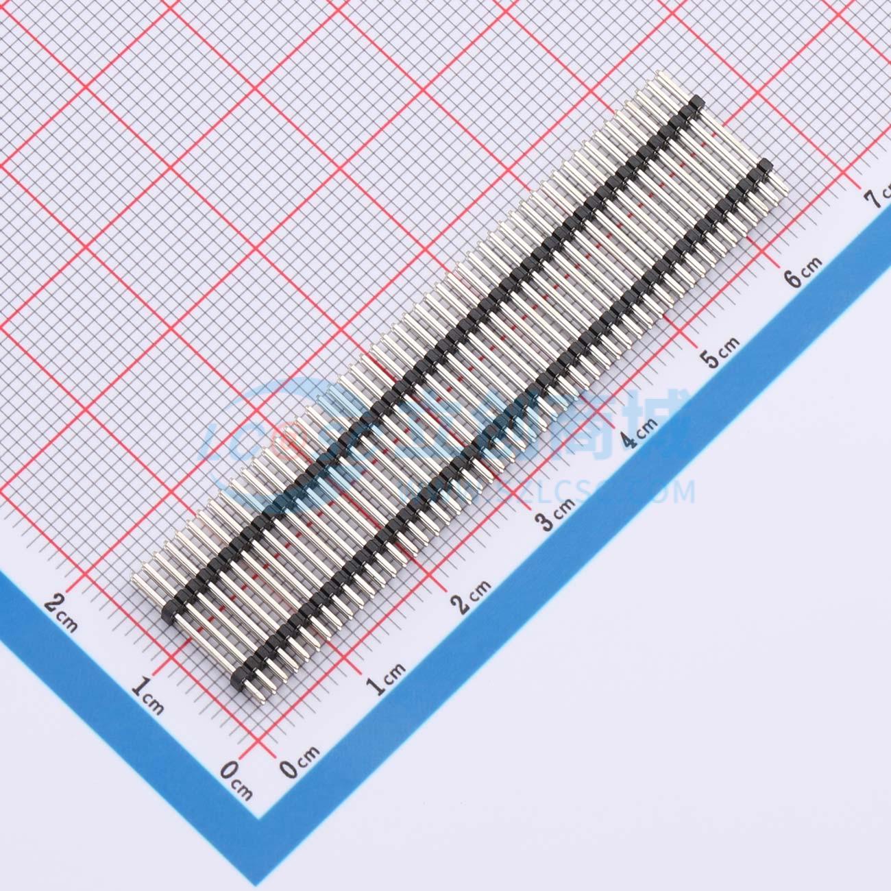 - 排针1.27mm直插 双塑双排 2x50P 4.0(1.0)7.0(1.0)2.3mm 针长15.3mm 镀金