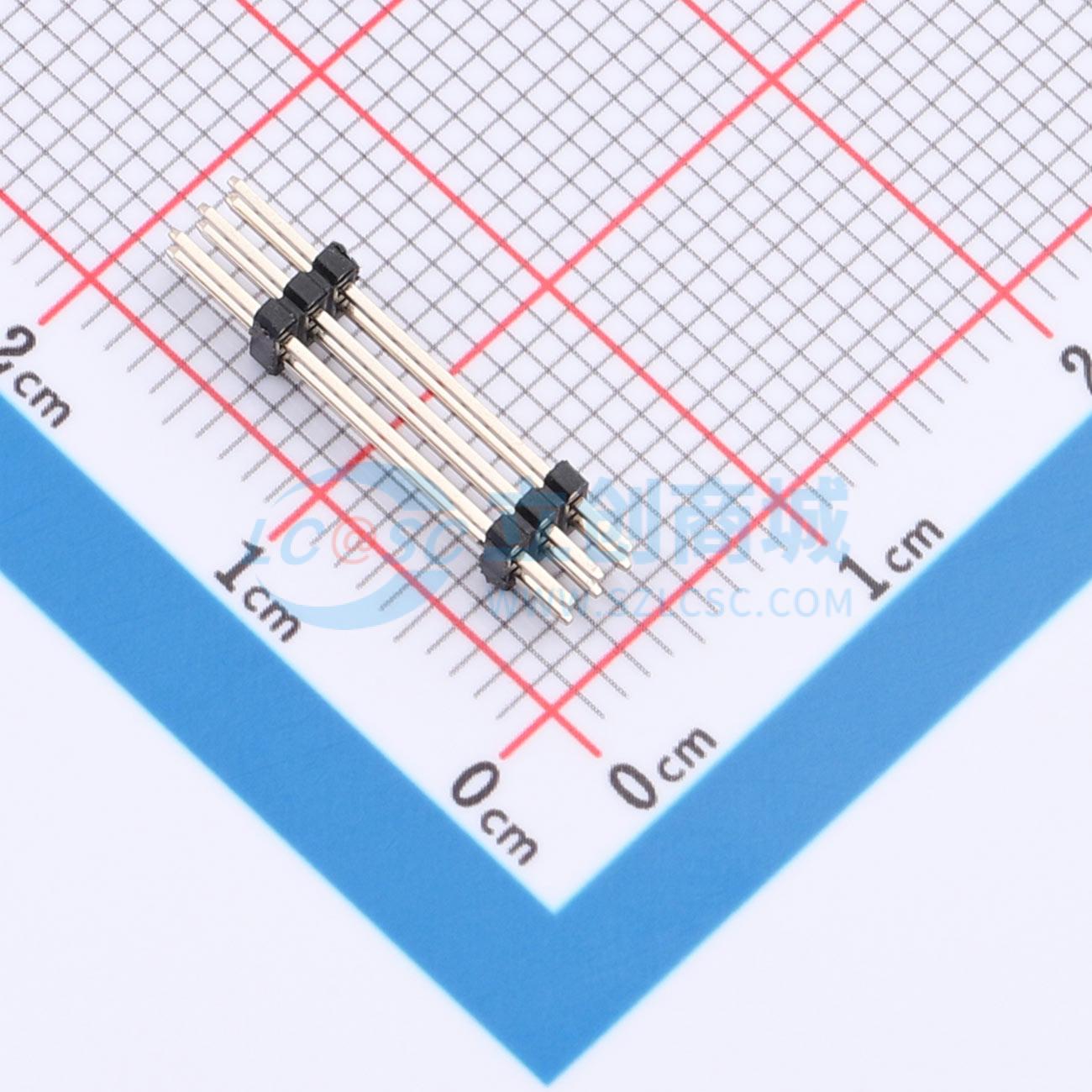 排针1.27mm直插 双塑双排 2x03P 4.0(1.0)9.0(1.0)2.3mm 针长17.3mm 镀金