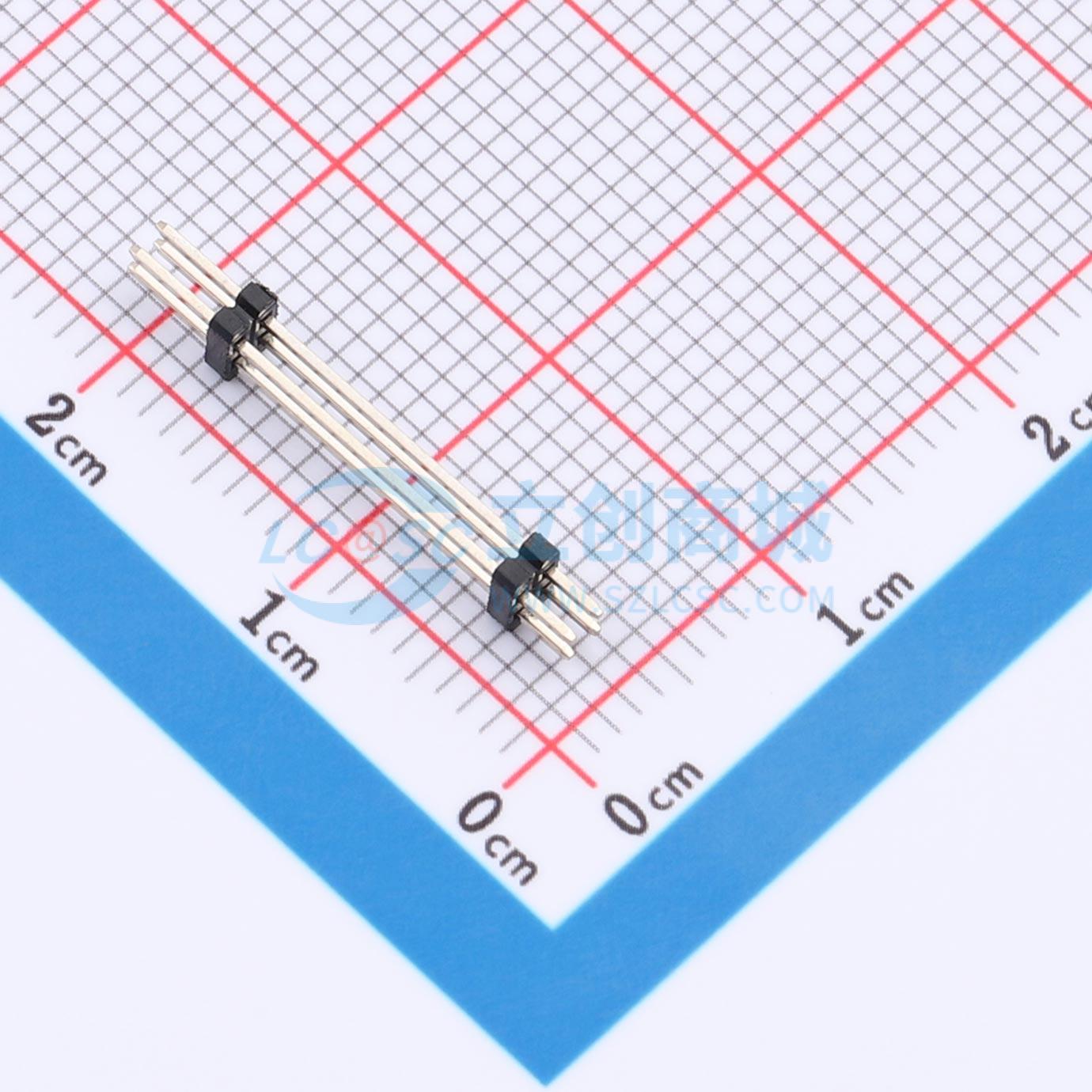 排针1.27mm直插 双塑双排 2x02P 4.0(1.0)12.0(1.0)2.3mm 针长20.3mm 镀金