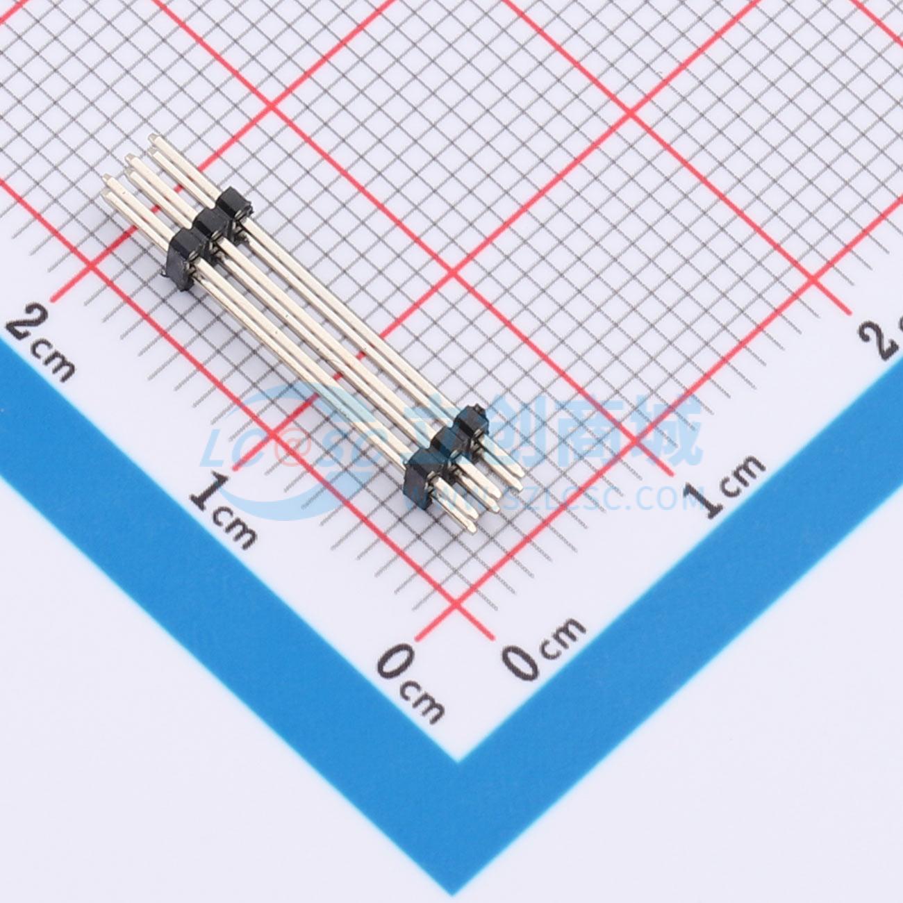 排针1.27mm直插 双塑双排 2x03P 4.0(1.0)12.0(1.0)2.3mm 针长20.3mm 镀金
