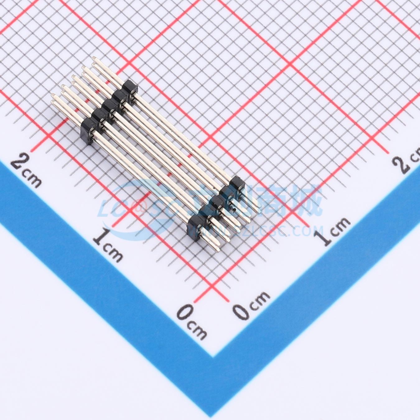 - 排针1.27mm直插 双塑双排 2x05P 4.0(1.0)12.0(1.0)2.3mm 针长20.3mm 镀金