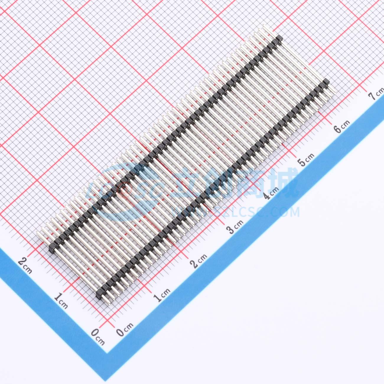 - 排针1.27mm直插 双塑双排 2x50P 4.0(1.0)12.0(1.0)2.3mm 针长20.3mm 镀金