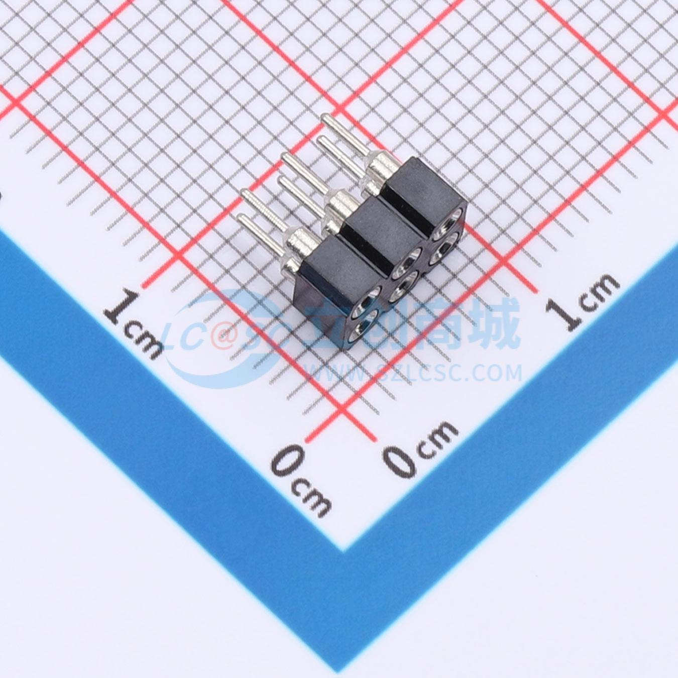 - 圆孔排母2.54mm直插 塑高3.0mm 双排 2x03P L7.43 铍铜四爪 内金外锡