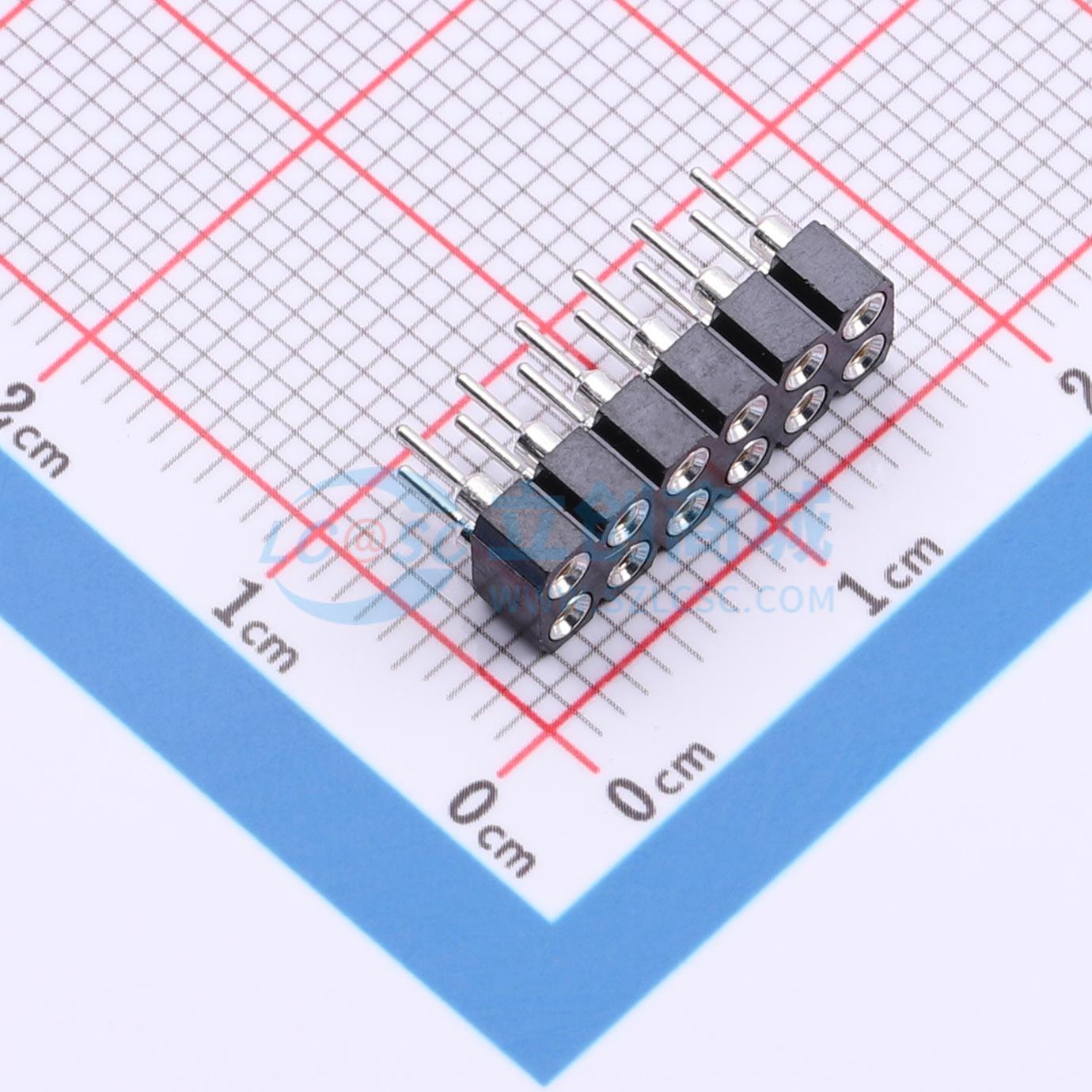 - 圆孔排母2.54mm直插 塑高3.0mm 双排 2x06P L7.43 铍铜四爪 内金外锡