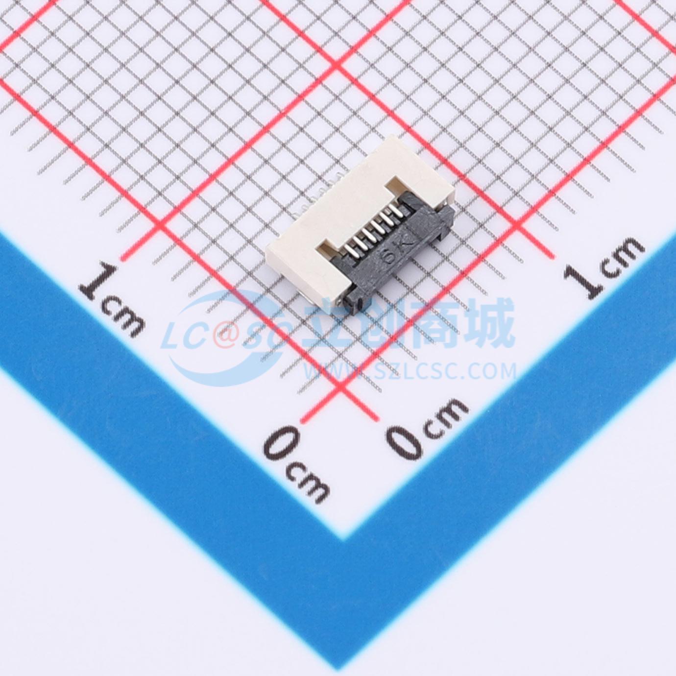 - 间距:0.5mm P数:6P 厚度H:1.5mm 卧贴,翻盖式下接