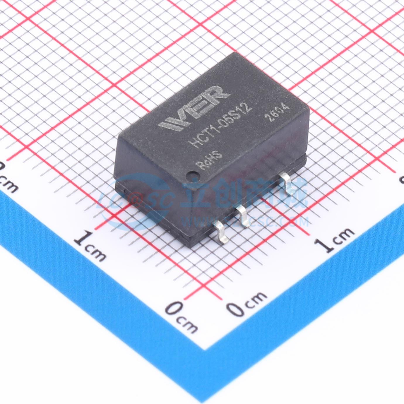 此图展示了型号为 HCT1-05S12 的焊盘布局