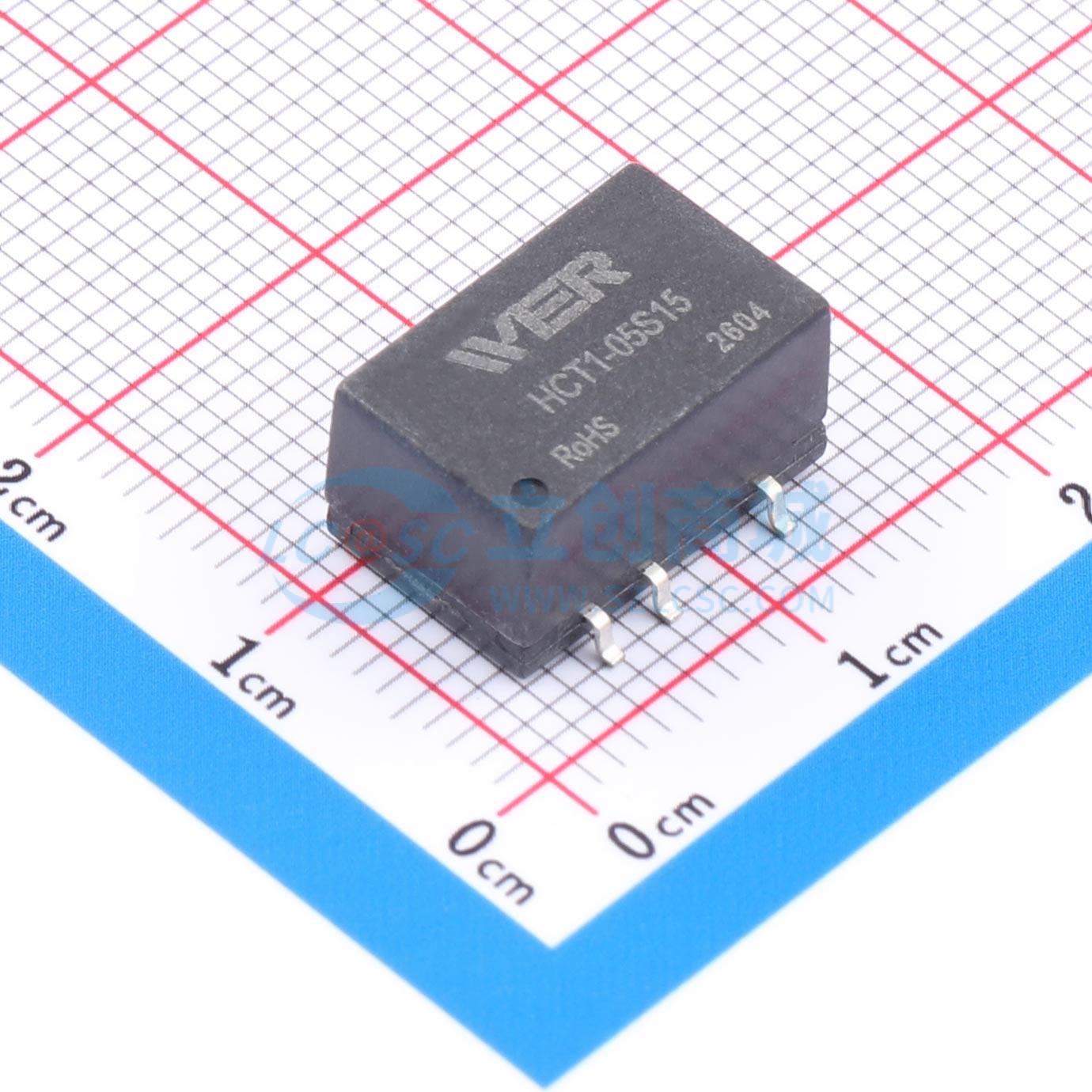 此图展示了型号为 HCT1-05S15 的焊盘布局