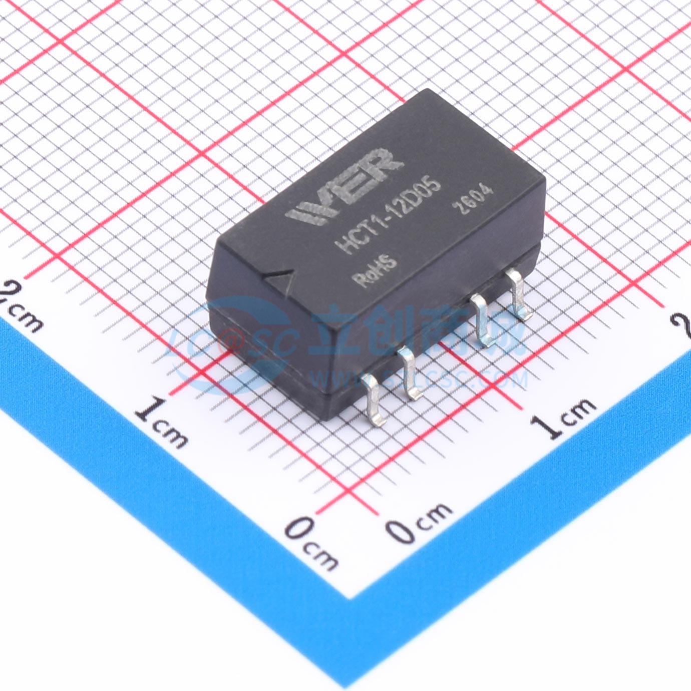 此图展示了型号为 HCT1-12D05 的焊盘布局