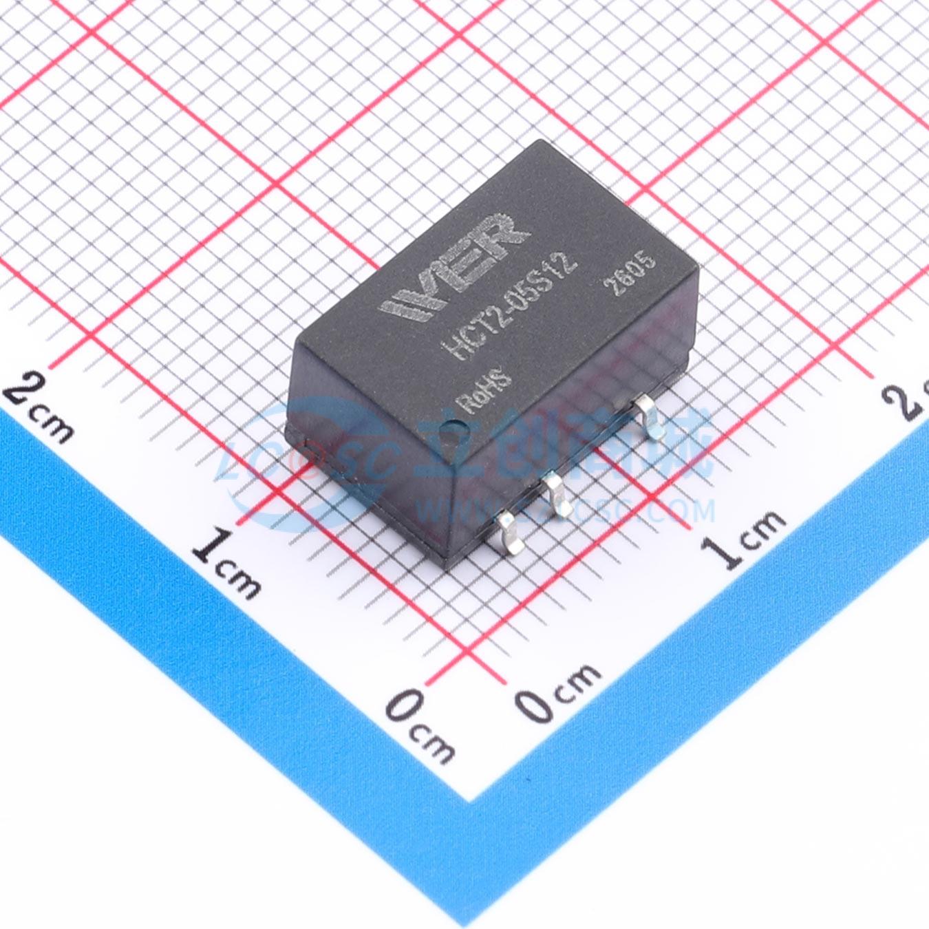 此图展示了型号为 HCT2-05S12 的焊盘布局