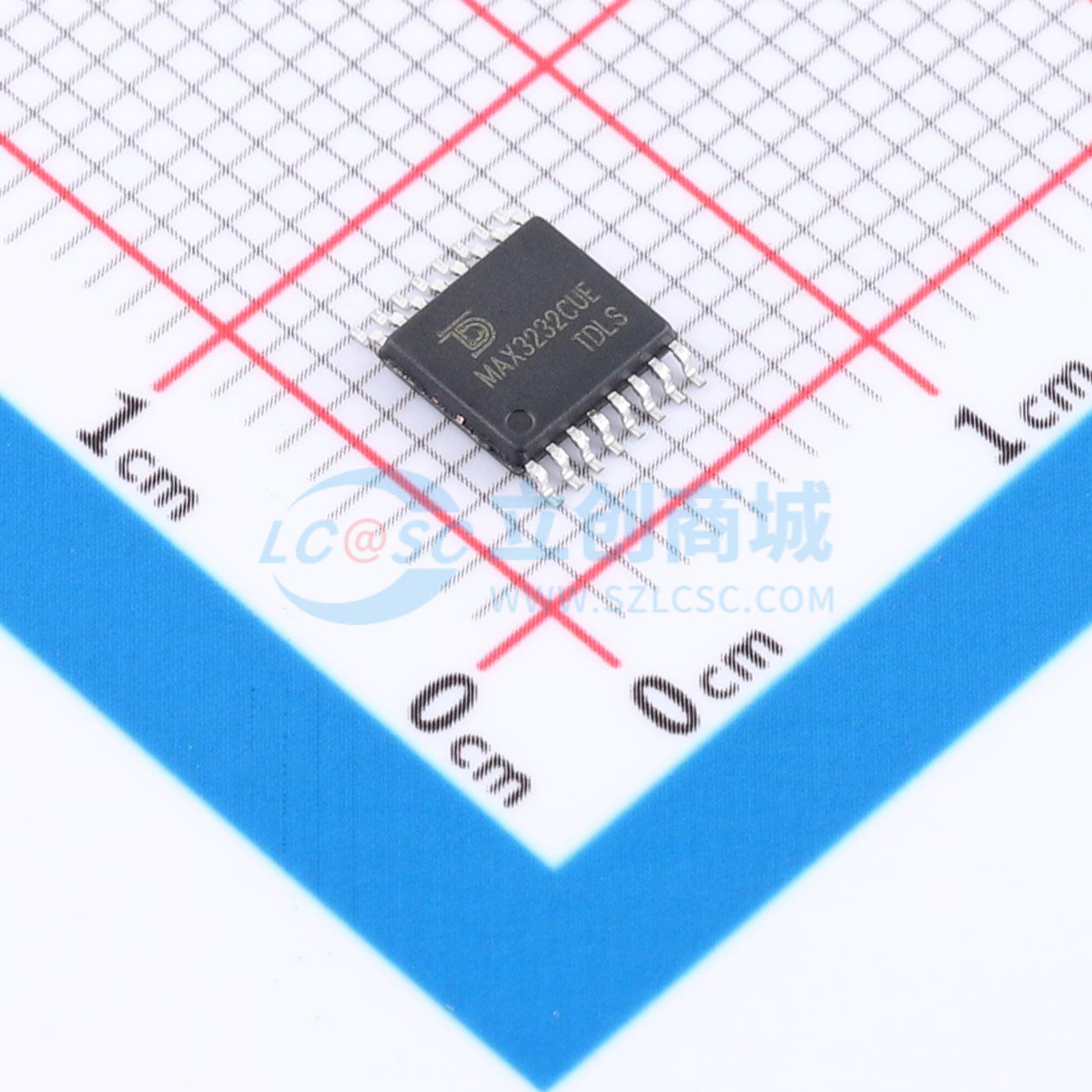 此图展示了型号为 MAX3232CUE-TUDI 的引脚布局