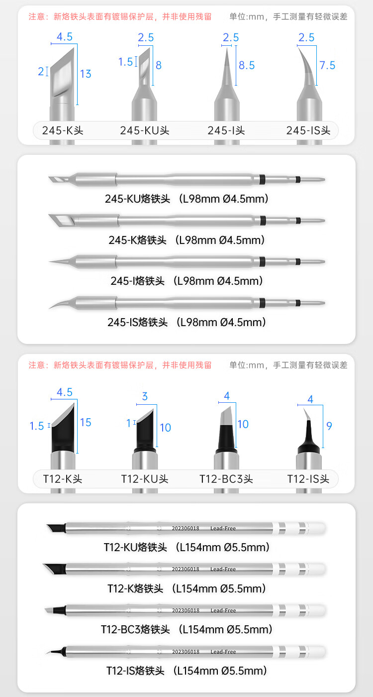 正点原子/ALIENTEK 245-KU烙铁头(小刀头)适用T80P/T90B/T200-245手柄/T300-245手柄