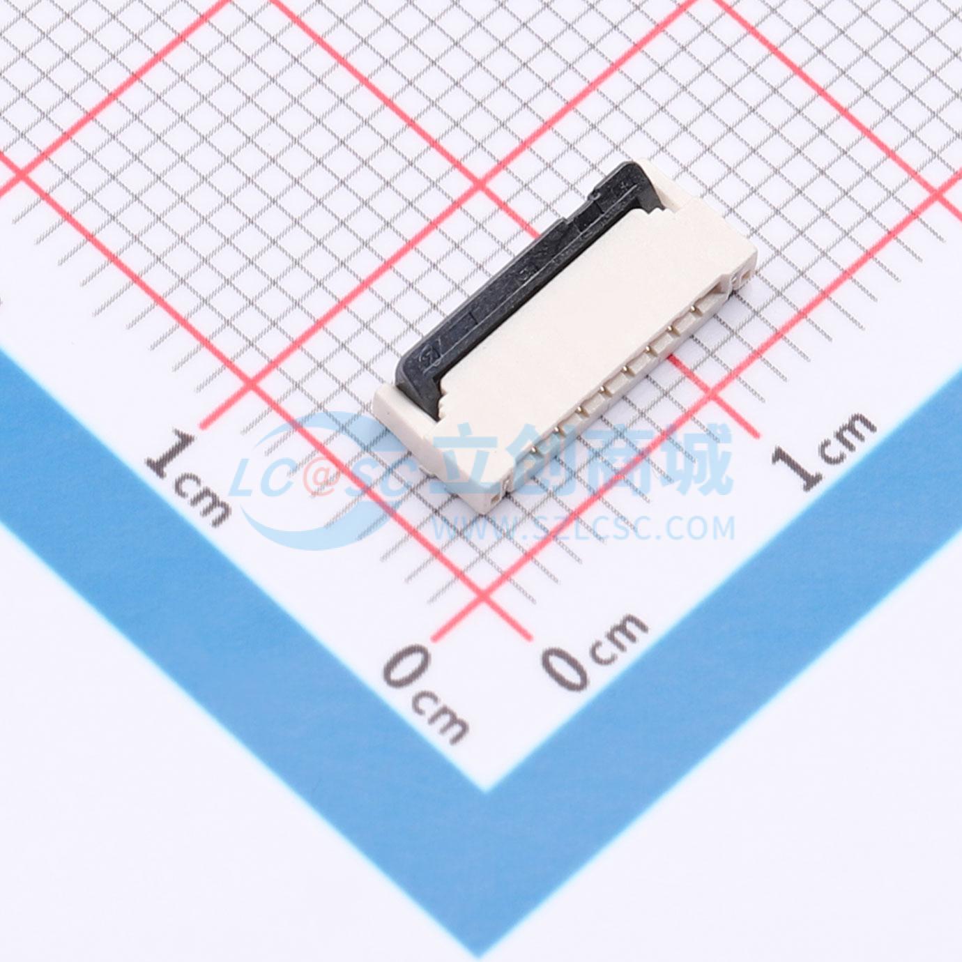 - 间距:1.0mm P数:8P 前插后掀式 双侧触点/上下接 板上高度2MM