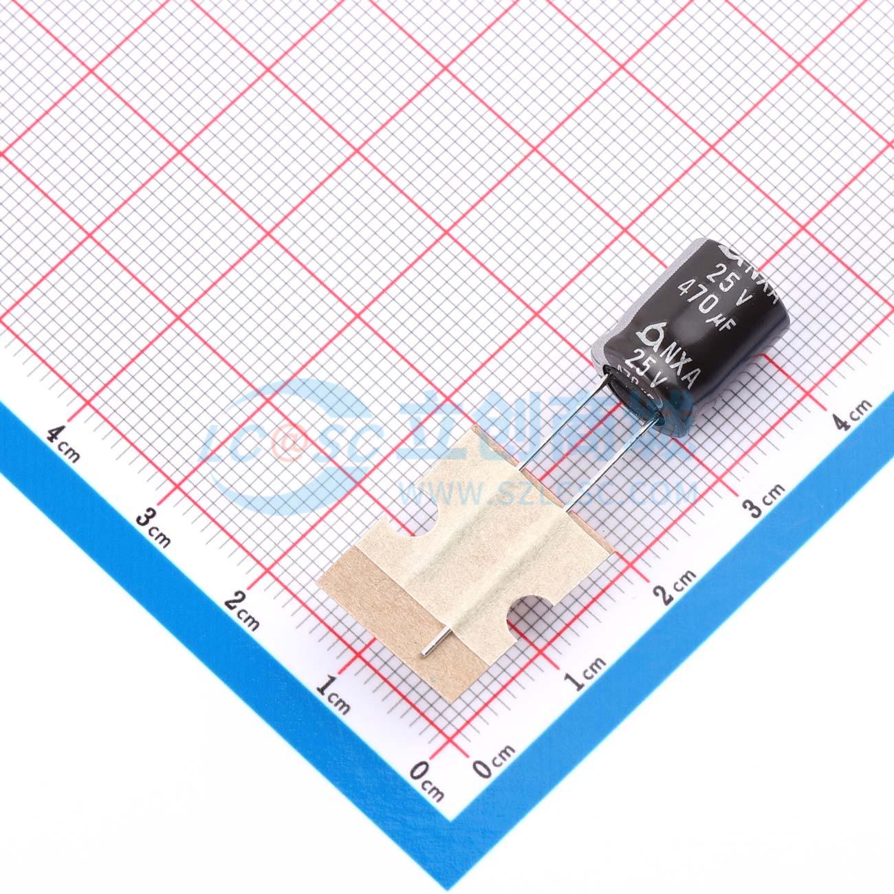 此图展示了型号为 NXA 25V470UF 10*12.5 的引脚布局
