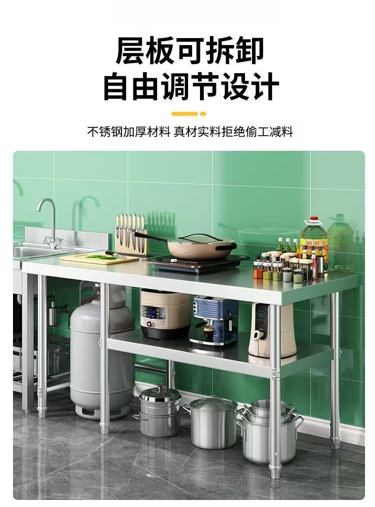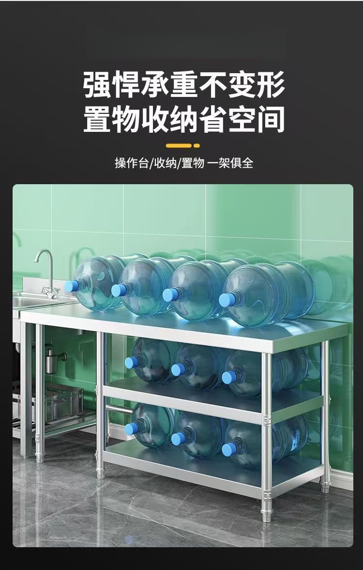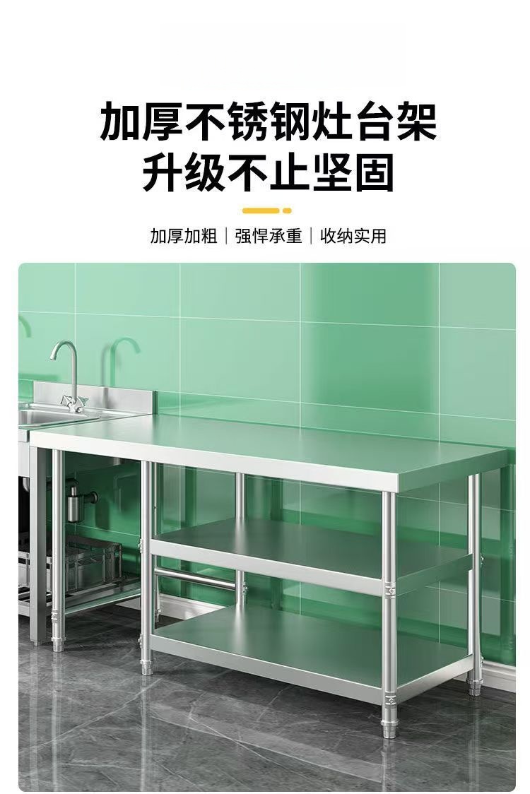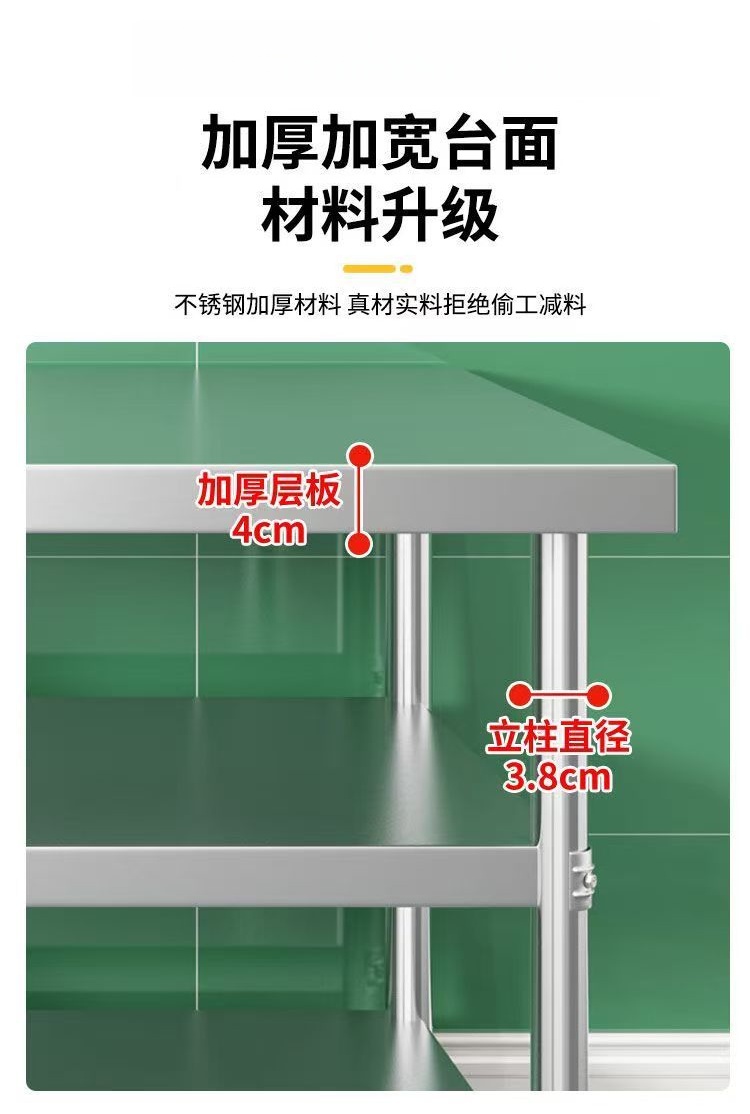 JRD(建瑞达) 不锈钢长方形商用厨房双层工作台不锈钢工作台尺寸三层 150*80*75cm
