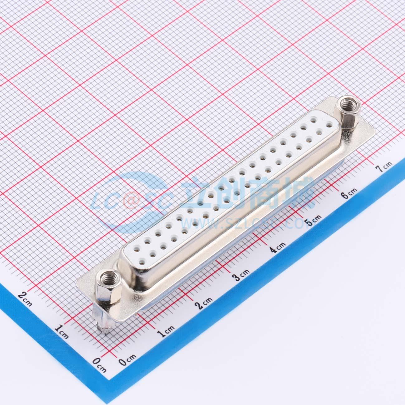 D-SUB连接器母座,双排37P母头白胶,180度插板,铆鱼叉锁铜螺丝,车针2μ镀金,5A大电流