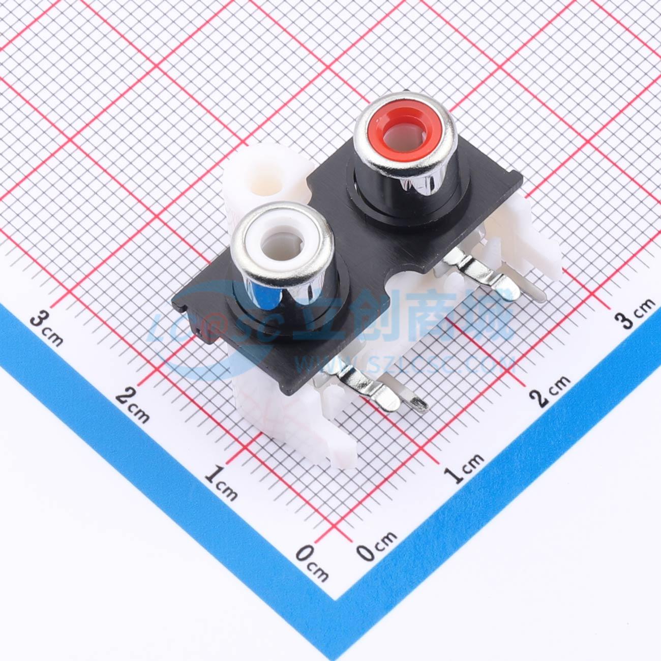 高品质二孔十型1x2双层RCA(AV)莲花接口左白右红/BT籽/镀铜锡,特厚脚,黑色基座