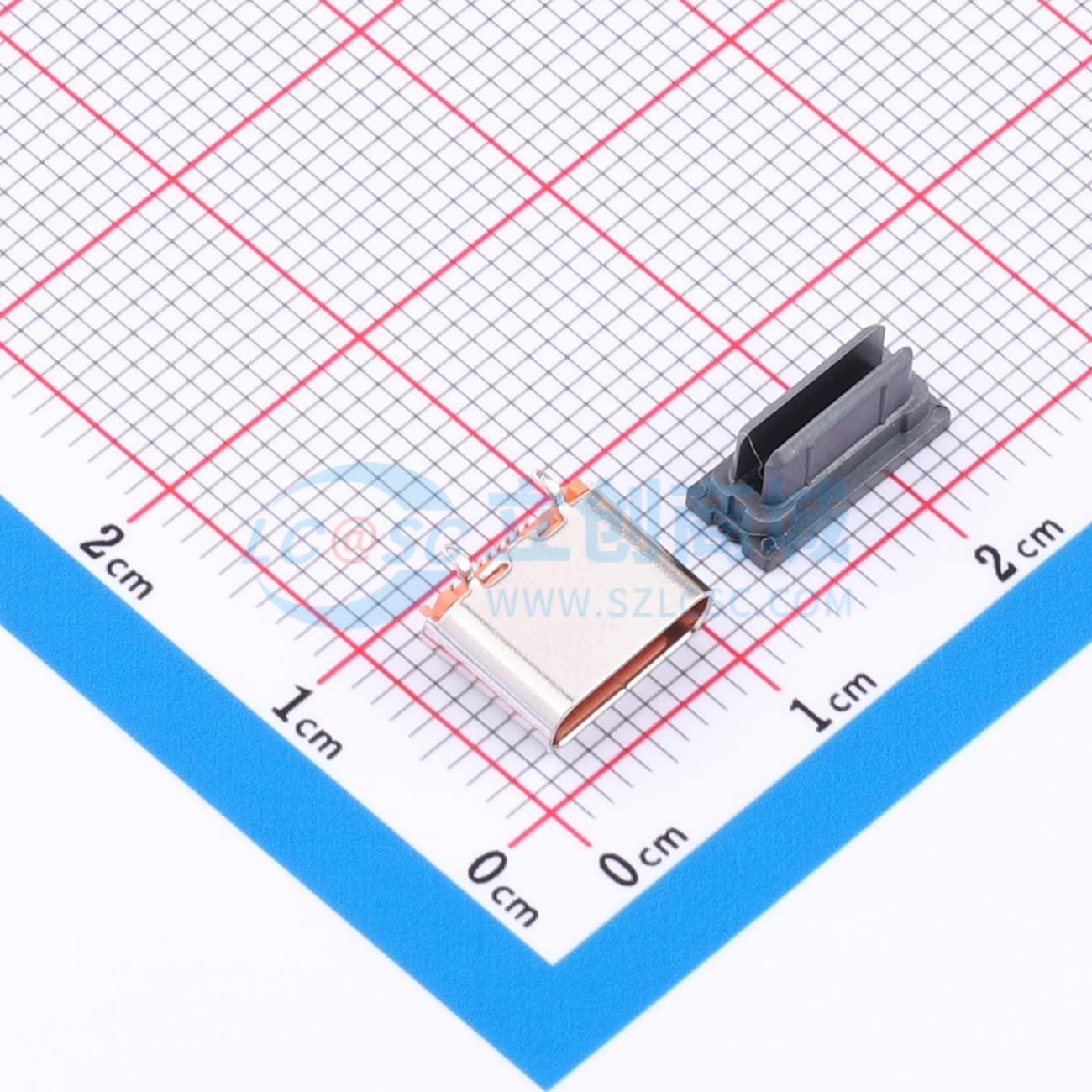 TYPE-C母座 16P 直立式双排(H6.8) LCP 橙色 C7025 1u" Au SUS304 镀亮镍 无弹片