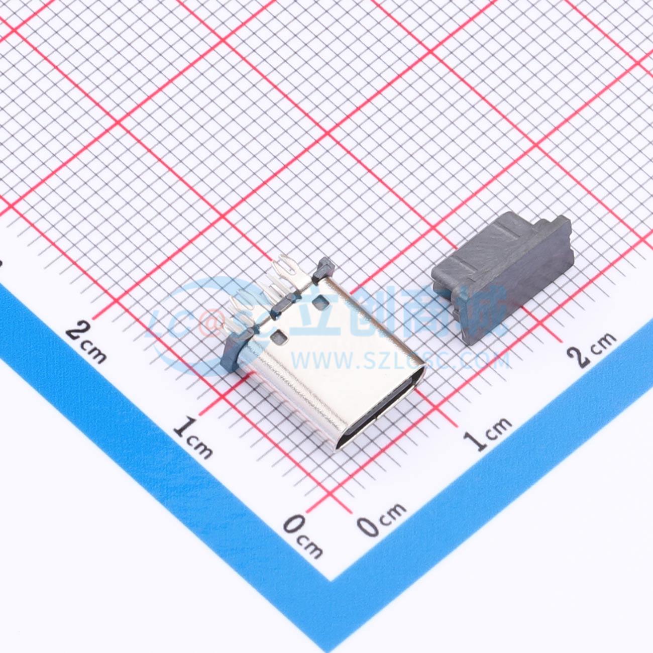 TYPE-C母座 16P 立插型H10.0 LCP 黑色 C7025 1u" Au SUS304 镀亮镍 无弹片