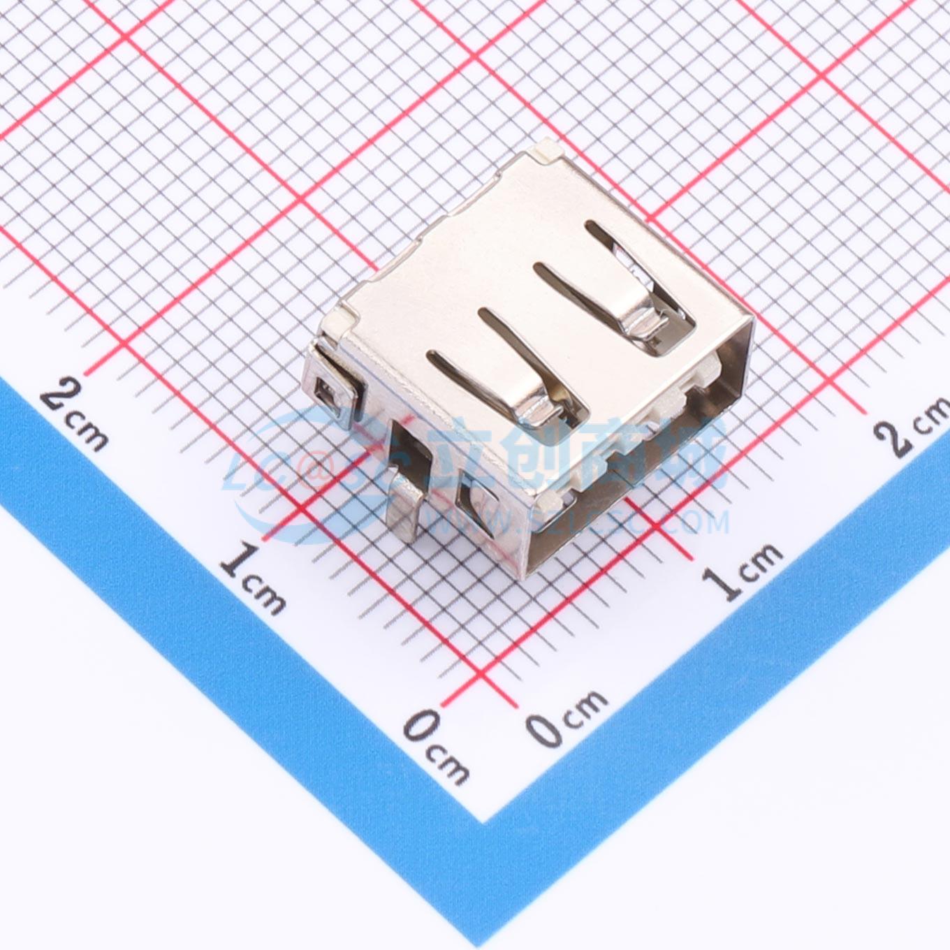 - USB 2.0 AF母座 双面插90°DIP LCP直脚直边无卷边有垫片 垫高