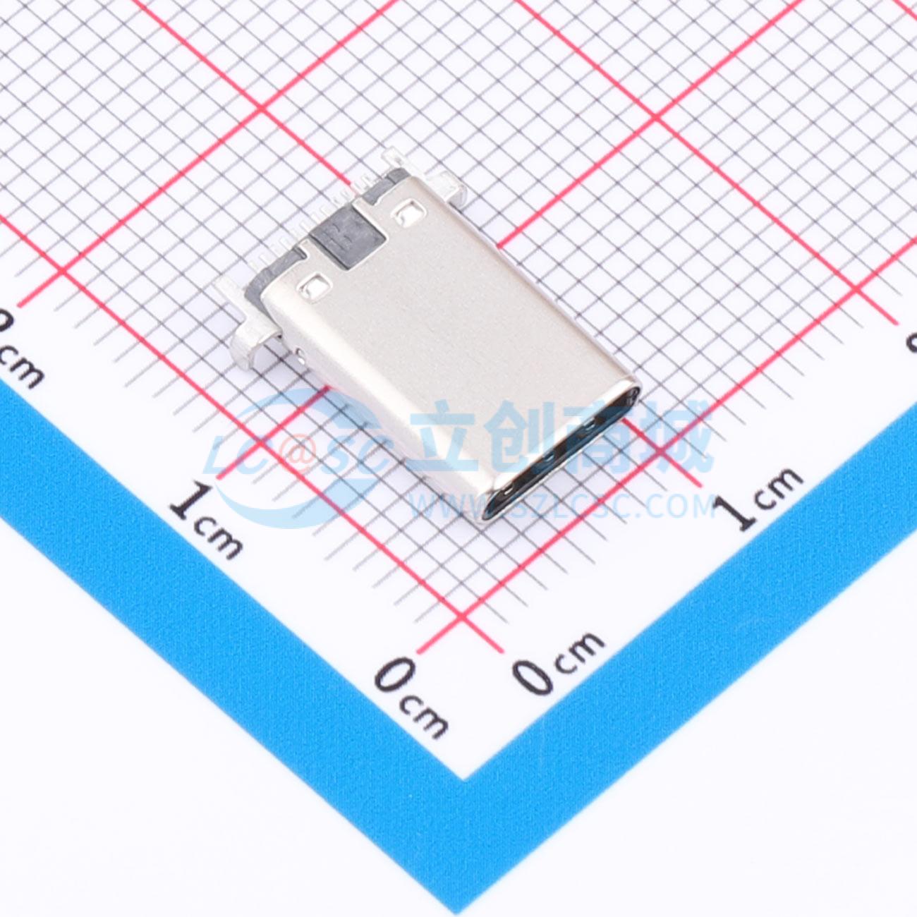 - USB TYPE C 公头12P(10+2P)单排SMT铆合款公座 有插脚有焊脚 插脚长11.45 脚宽1.0 喷砂镍