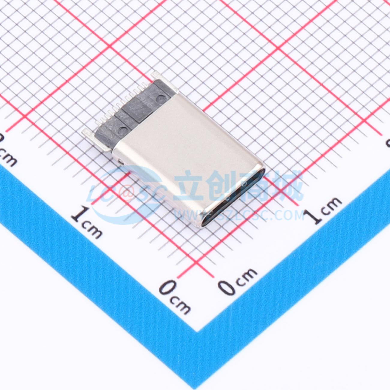 - USB TYPE C 公头12P(10+2P)单排SMT拉伸款公座 无插脚有焊脚 喷砂镍