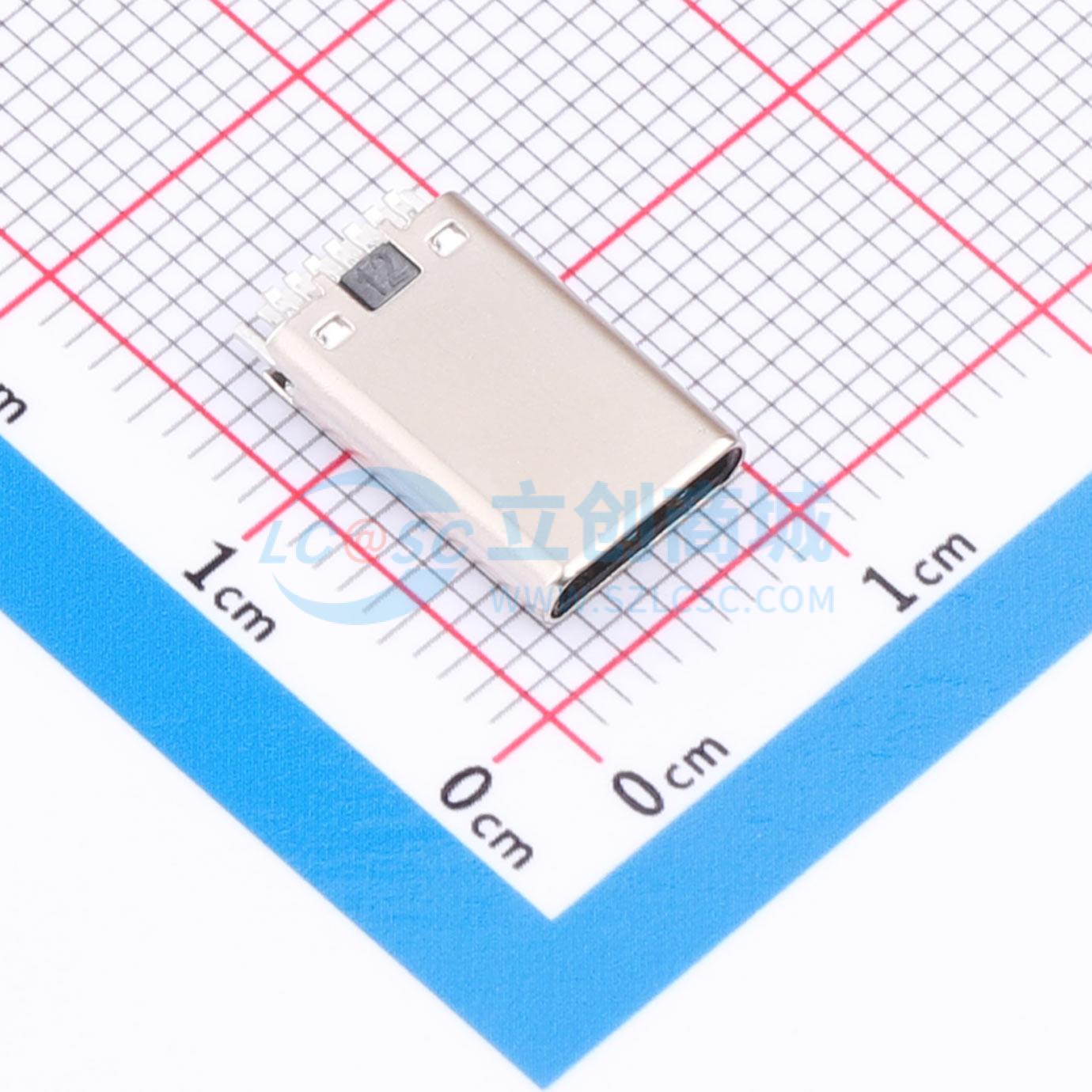 USB TYPE C 公头14P(7+7P) 铆合壳公座 夹板式有接地 L=11.5mm 黑胶接地11.5 K脚盲插