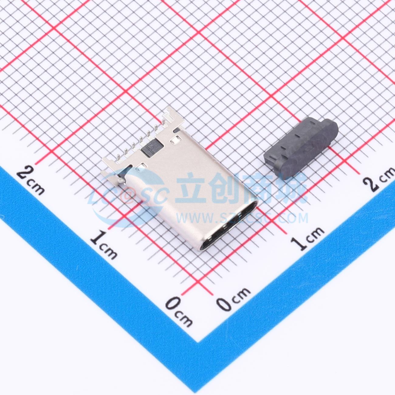 USB TYPE C 公头14P(7+7P) 铆合壳 Gen2.0立贴带接地 公座卡钩有防呆 喷砂哑镍立插外壳插脚2.0款