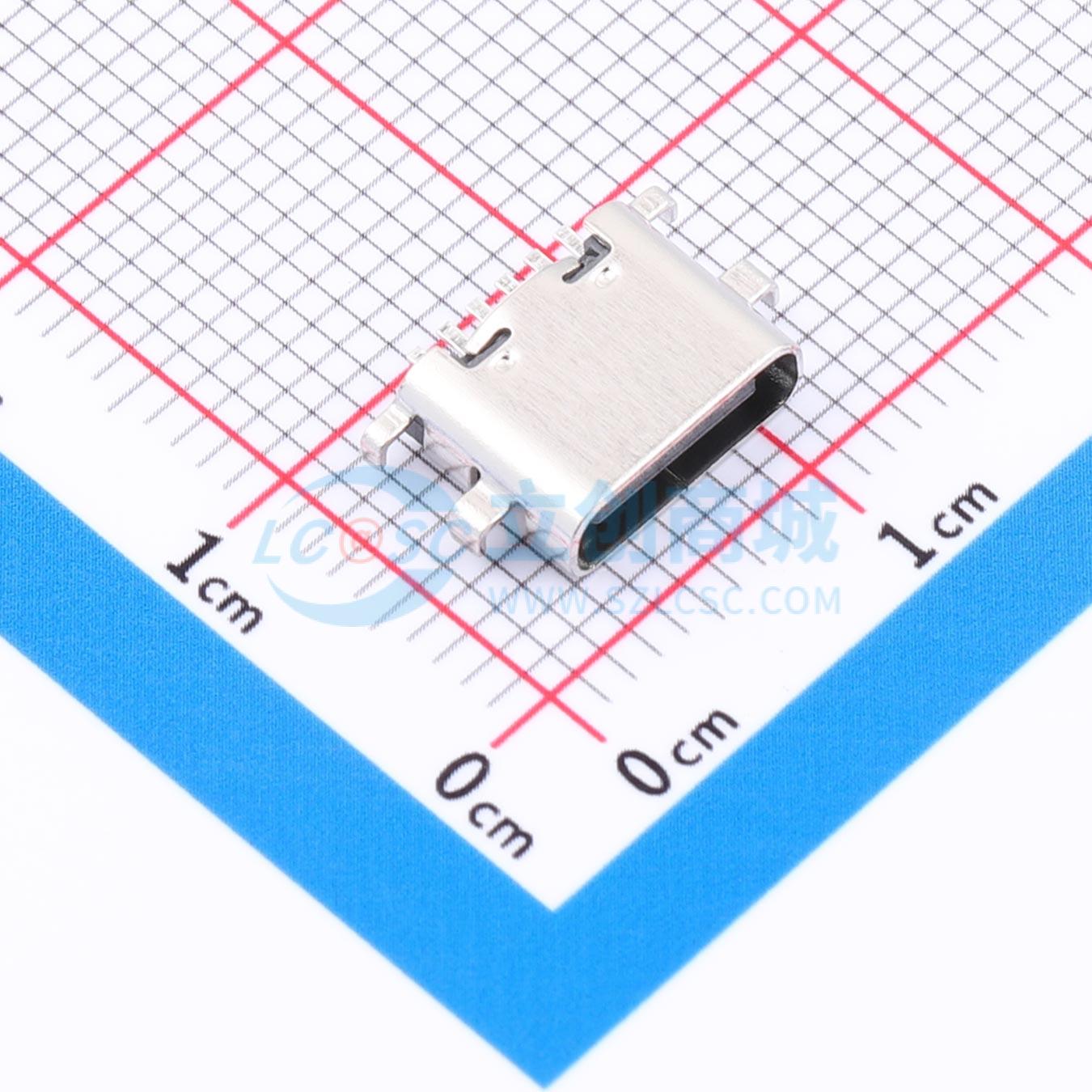 TYPE-C母座6P 4脚插件沉板1.6mm 壳长6.8mm 不锈钢外壳