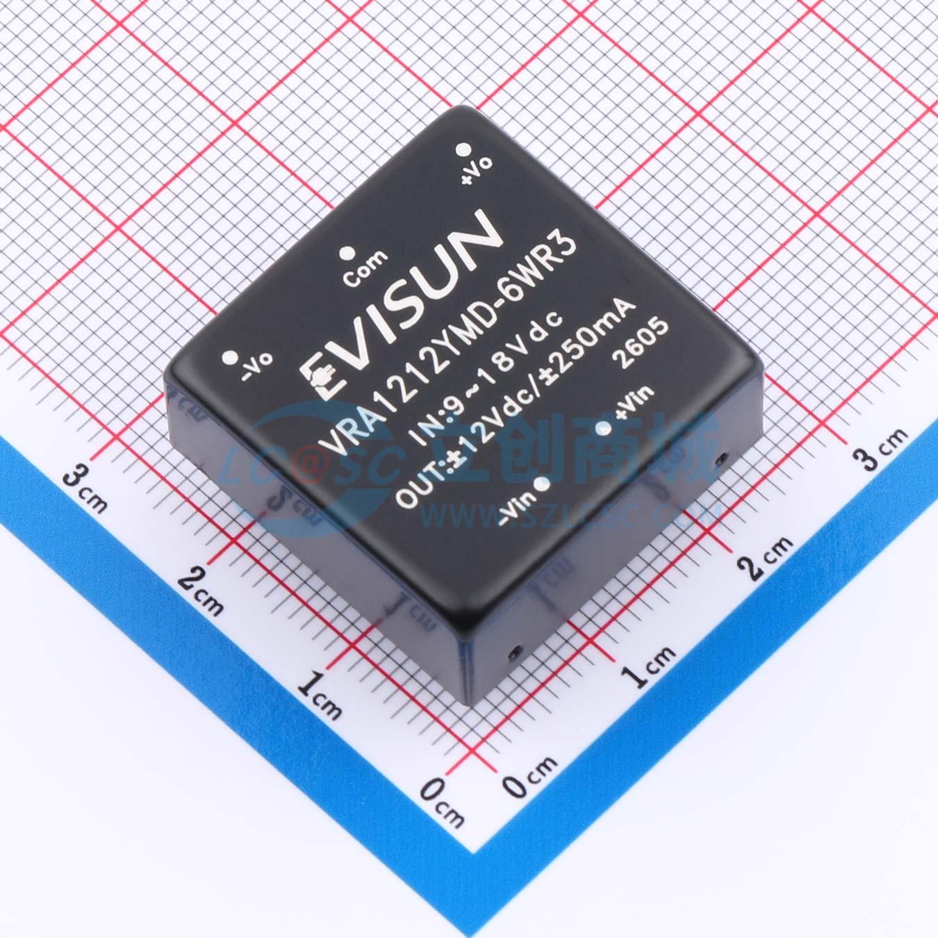 - 支持100%全国产;VRA1212YMD-6WR3型号是2:1宽电压输入,隔离稳压双路输出的DC/DC模块电源产品;输入电压12V(9-18V),输出电压±12Vdc,输出电流±250mA,输出功率6W;输出可持续短路保护,自恢复;转换效率高;低静态电流,低纹波系数和低噪音,超低功耗 ;最大容性负载100uF;输入输出隔离耐压1.5KVdc;尺寸:长25.40*高25.40*宽10.4mm