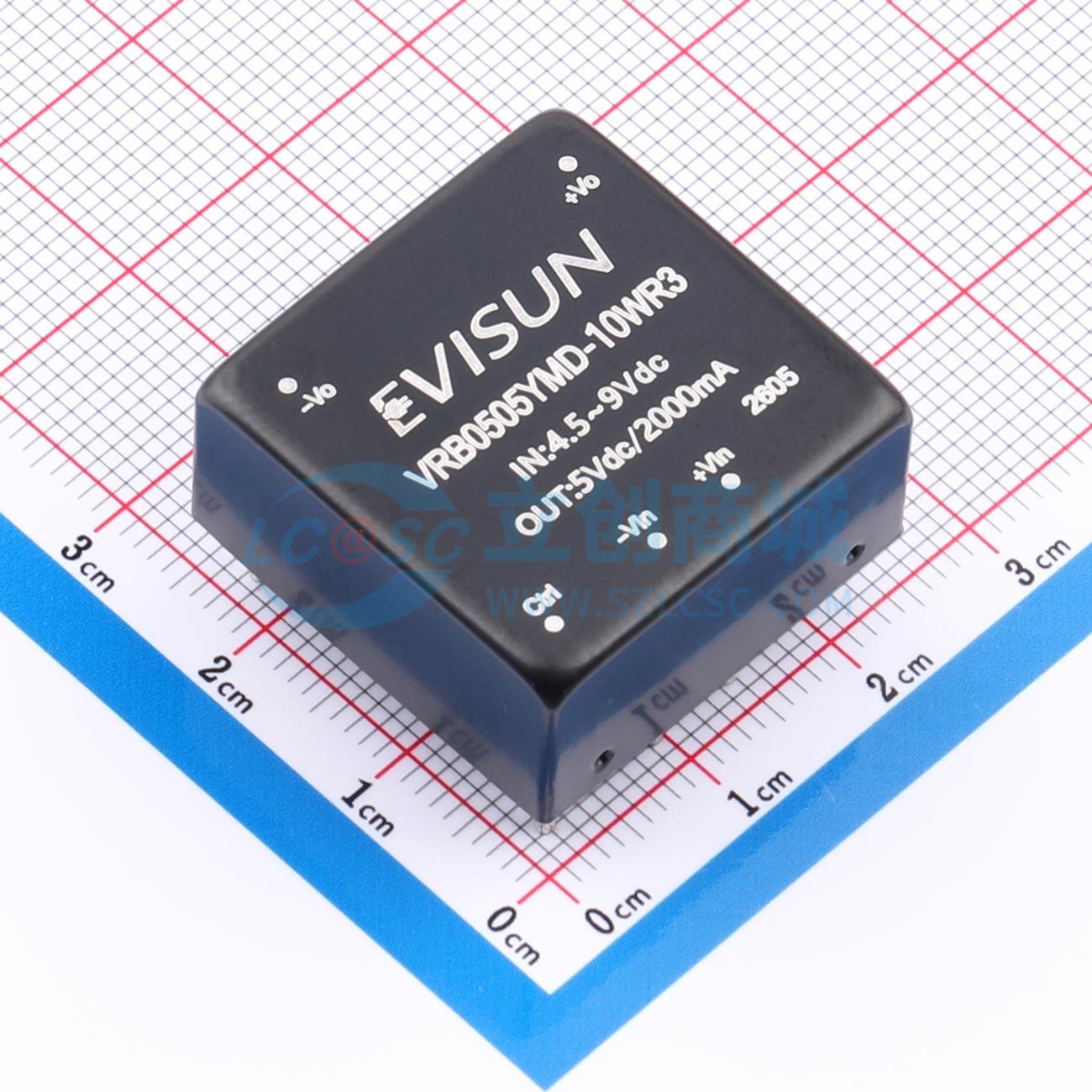 - 支持100%全国产;VRB0505YMD-10WR3型号是2:1宽电压输入,隔离稳压单路输出的DC/DC模块电源产品;输入电压5Vdc(4.5-9V),输出电压5Vdc,输出电流2000mA,输出功率10W;输出可持续短路保护,自恢复;高转换效率;低静态电流,低纹波系数和低噪音,超低功耗 ;输入输出隔离耐压1.5KVdc;尺寸:长25.40*高25.40*宽11.20mm