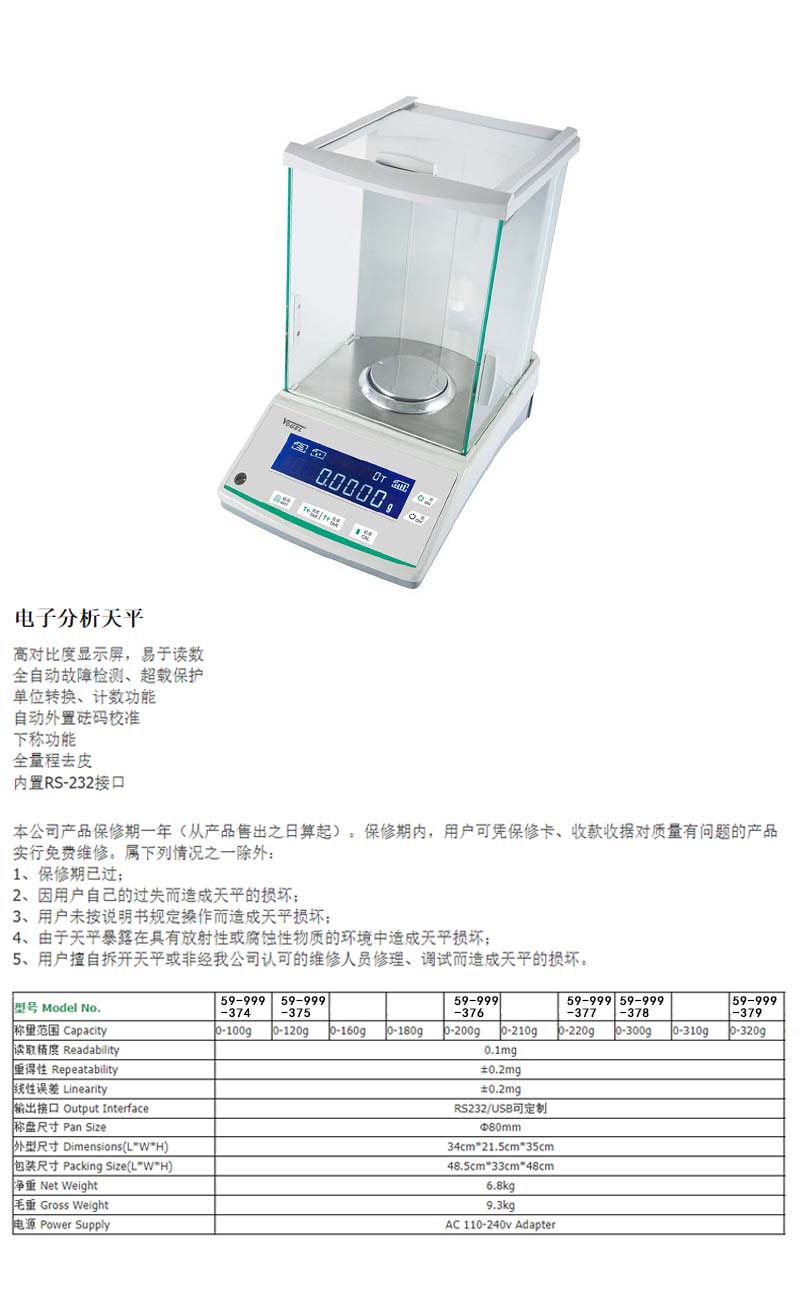 Vogel/沃戈耳 高清数显电子分析天平 0~100g 0.1mg