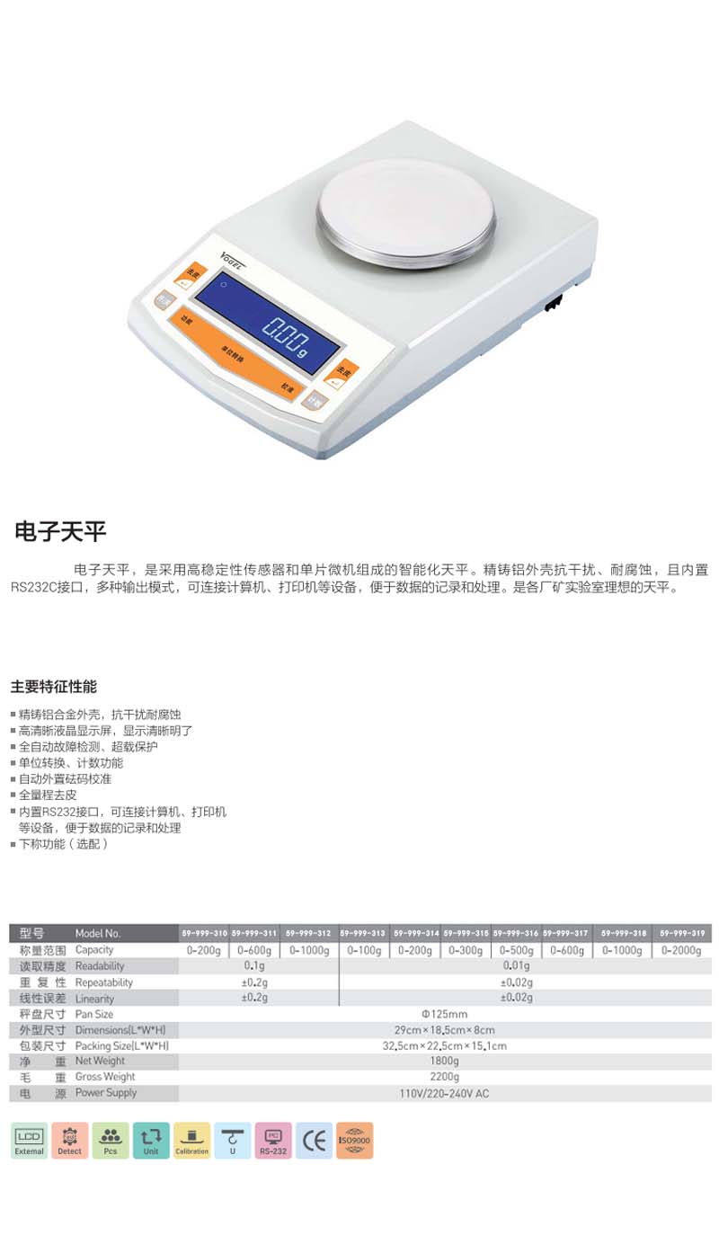 Vogel/沃戈耳 高清数显电子天平 0.01g 0~2000g