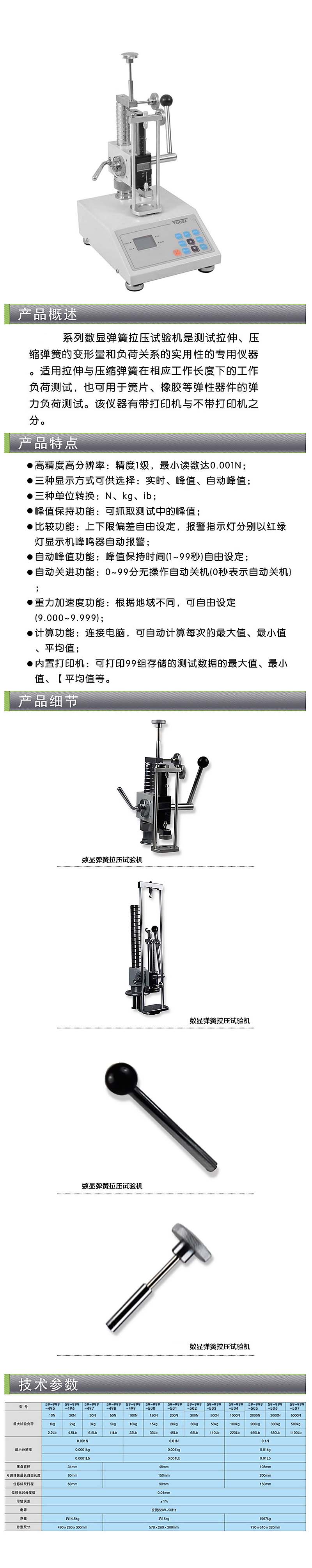 Vogel/沃戈耳 数显弹簧拉压试验机 最大试验机负荷 50N.m