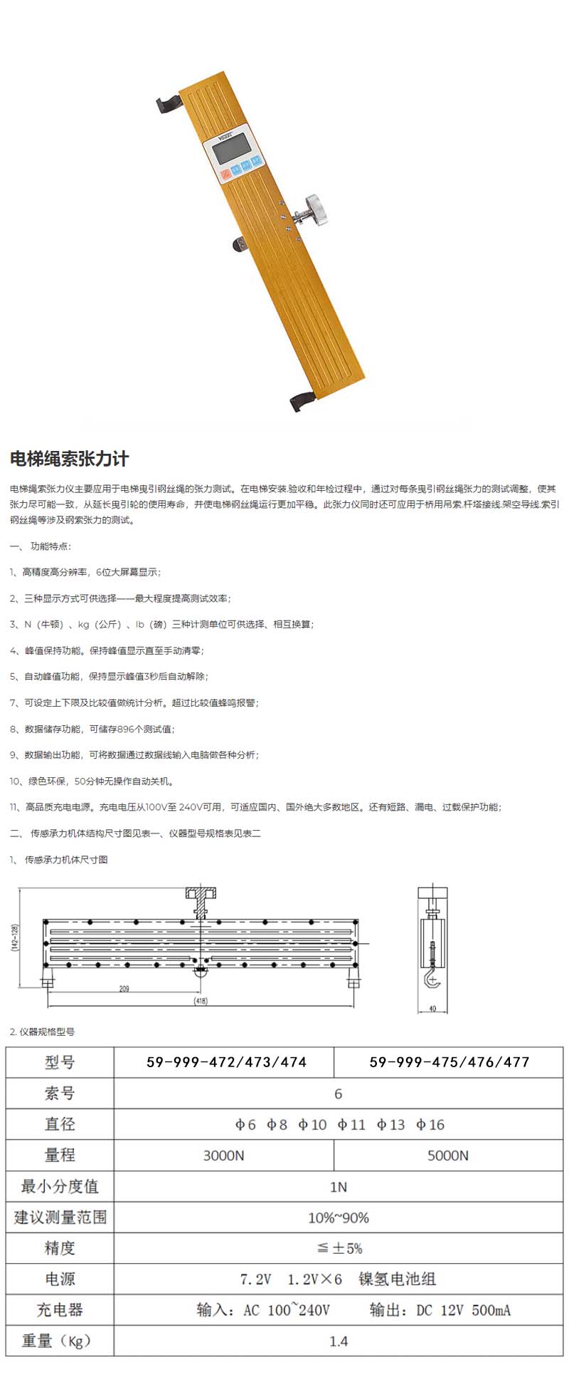 Vogel/沃戈耳 数显电梯绳索张力计 量程 5000N.m