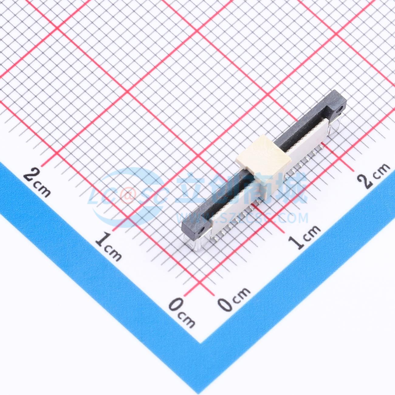 - FFC/FPC连接器 0.5mm/0.5PH P数32Pin 立式SMT/立贴抽拉 正脚/正位 高度2.0 编带+吸盖