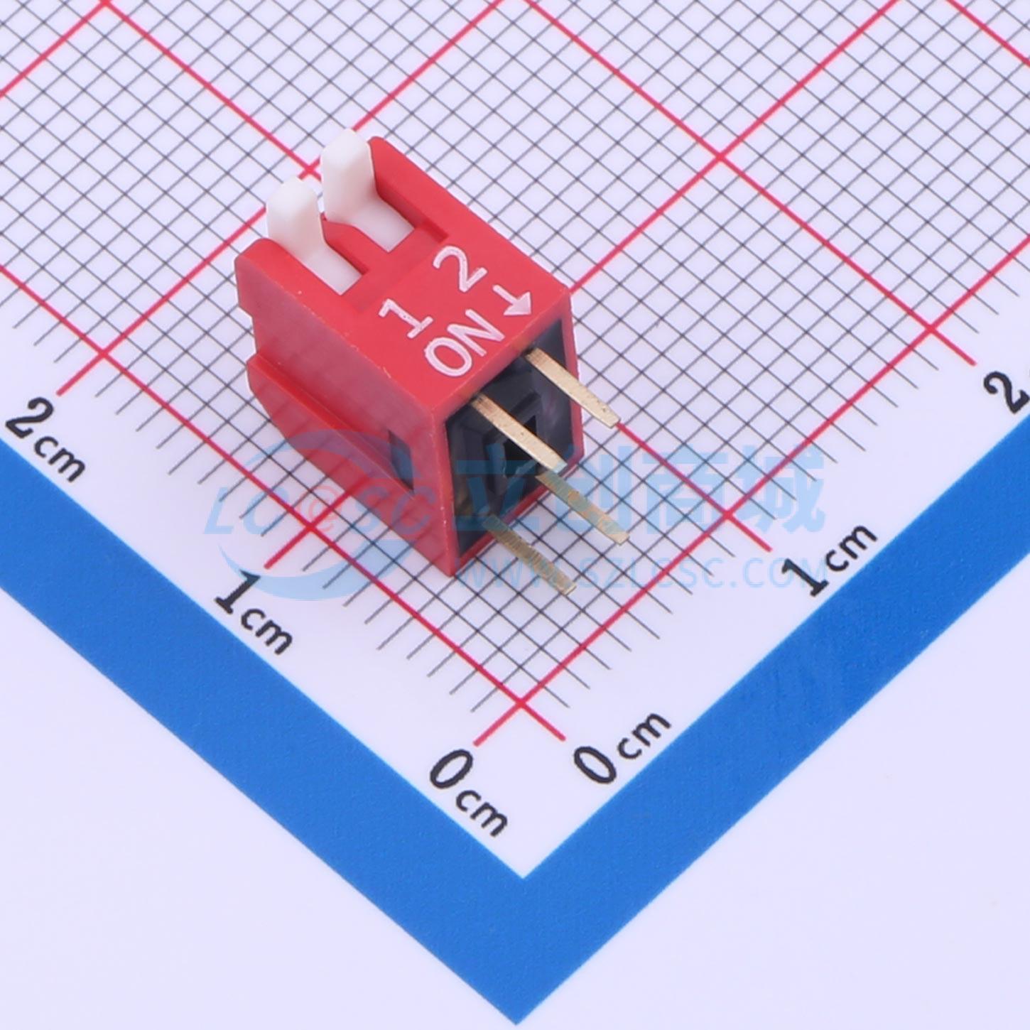 - 2位 琴键KE拨码开关 2.54mm引脚间距红色 长手柄 镀金 环保耐高温 稳定可靠