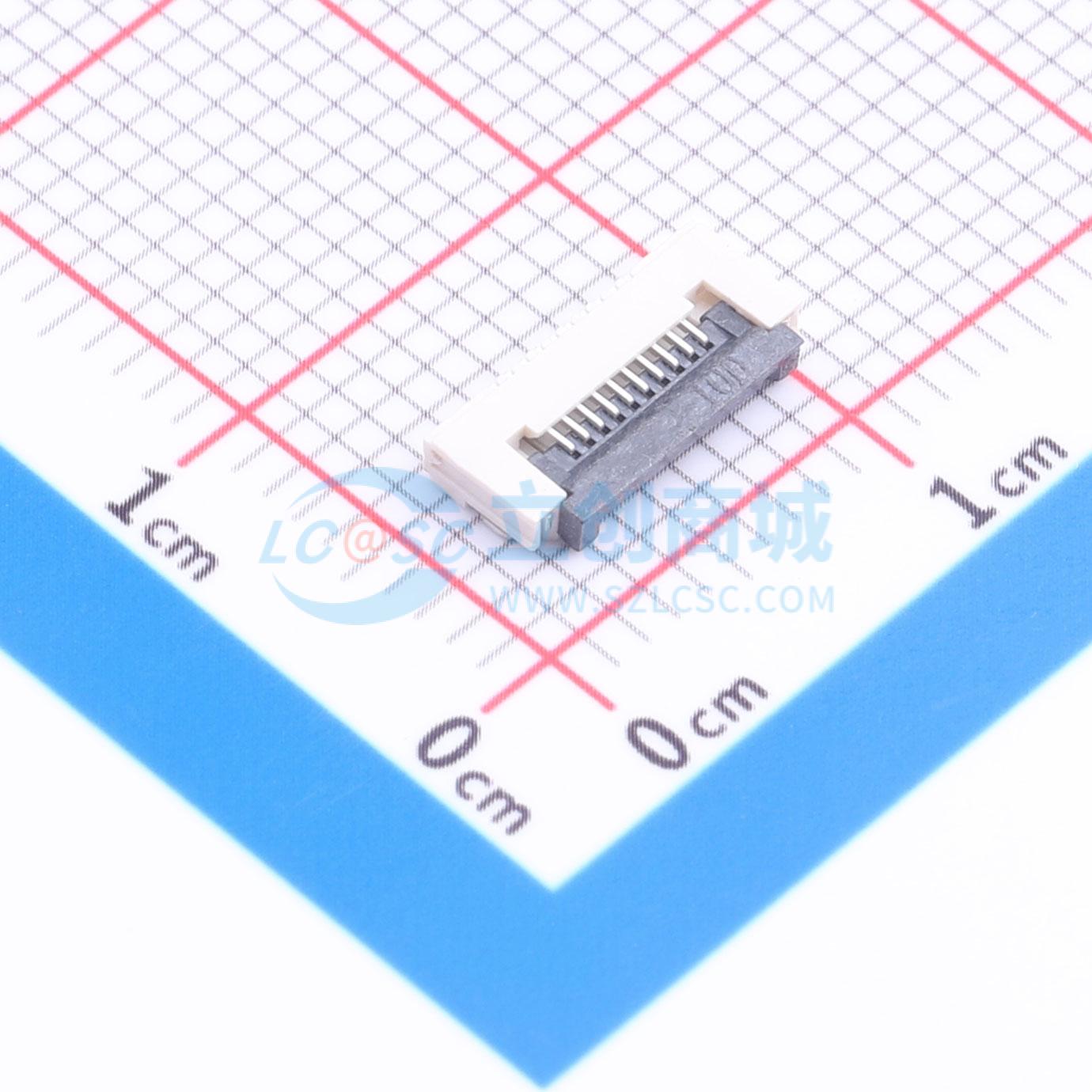 - FFC/FPC连接器 0.5mm/0.5PH P数10Pin 翻盖式/前翻 下接 高度H1.5