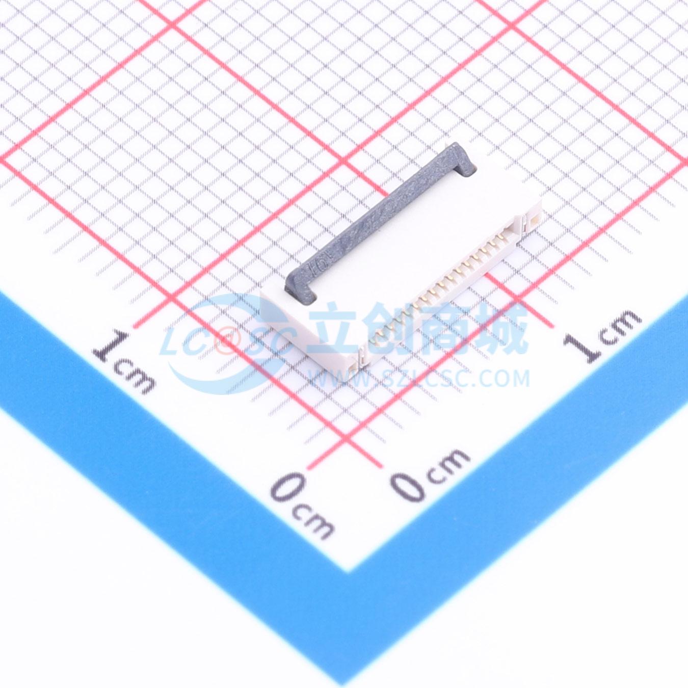 - FFC/FPC连接器 0.5mm/0.5PH P数16Pin 前插后压/后翻 端子镀金 高度H2.0