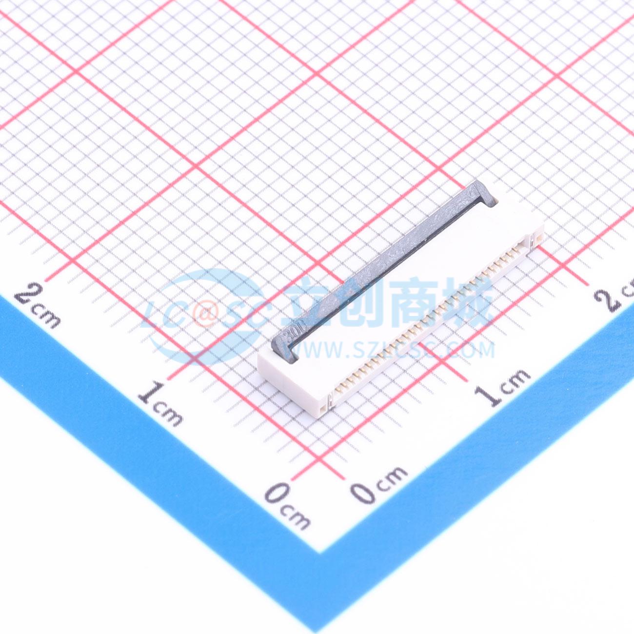 - FFC/FPC连接器 0.5mm/0.5PH P数30Pin 前插后压/后翻 端子镀金 高度H2.0