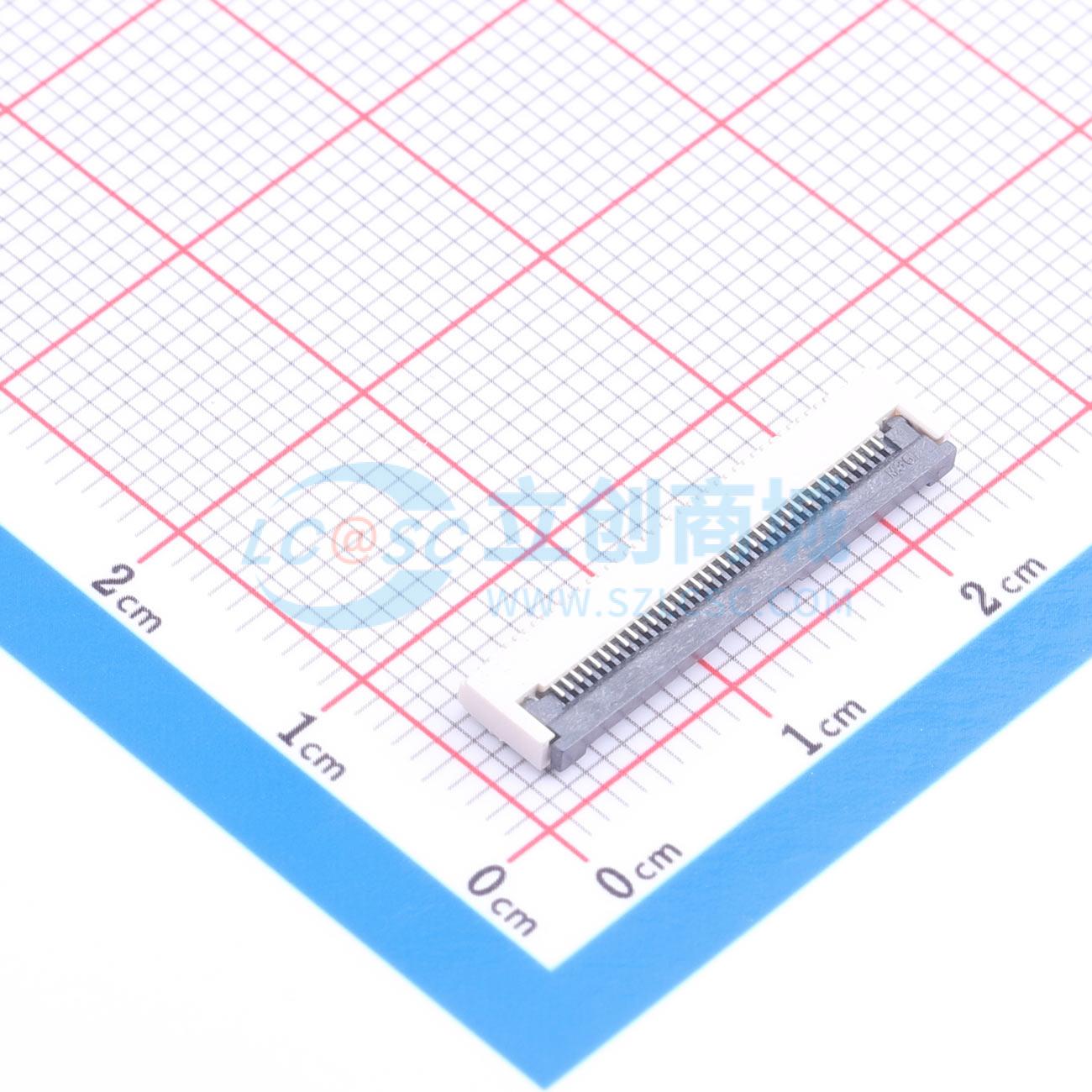 FFC/FPC连接器 0.5mm/0.5PH P数36Pin 翻盖式/前翻 下接 高度H2.0