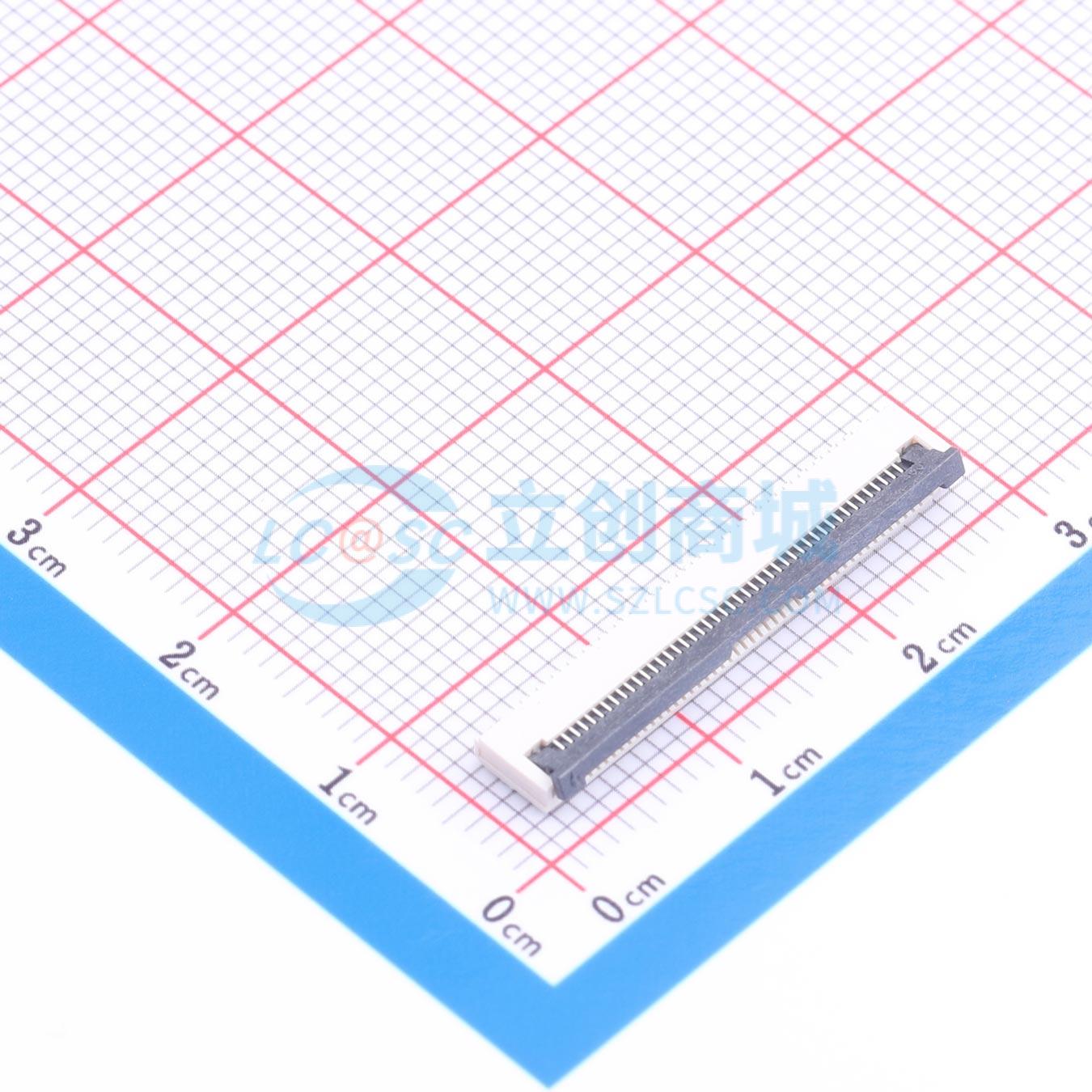 FFC/FPC连接器 0.5mm/0.5PH P数45Pin 翻盖式/前翻 下接 高度H2.0
