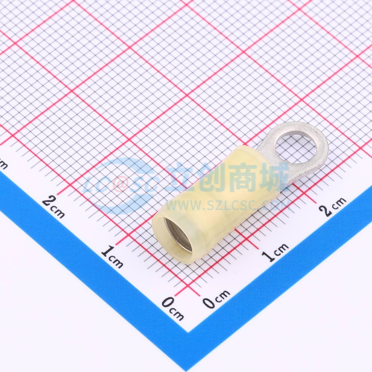 封闭环形舌形端子,12 - 10 AWG,#10螺柱,5 mm螺柱直径,封闭针筒,直型,镀锡,部分绝缘