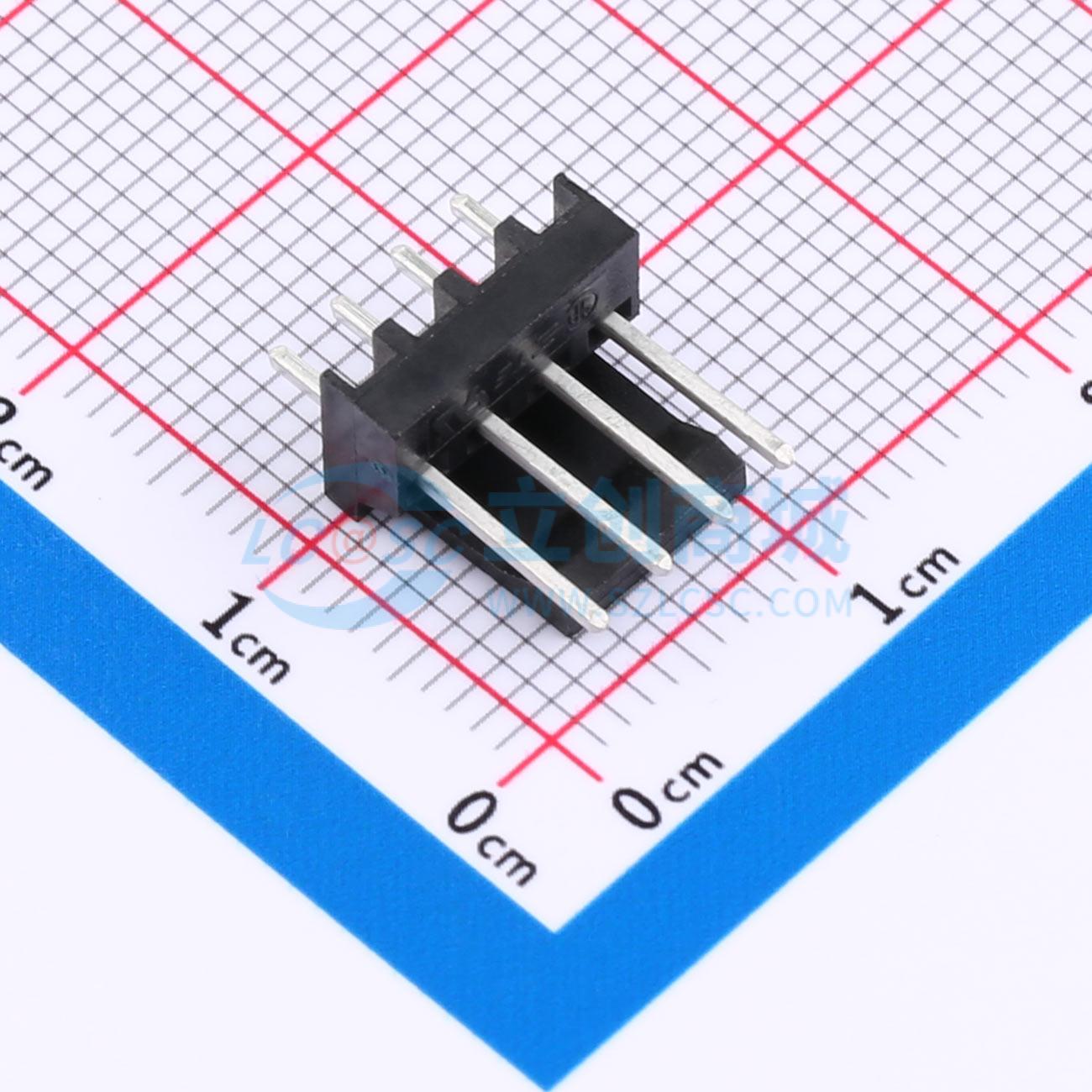 - 特性:垂直PCB安装插头,线对板连接。4个位置。中心距2.54 mm [.1 in]。部分屏蔽。镀锡。通孔焊接。信号传输