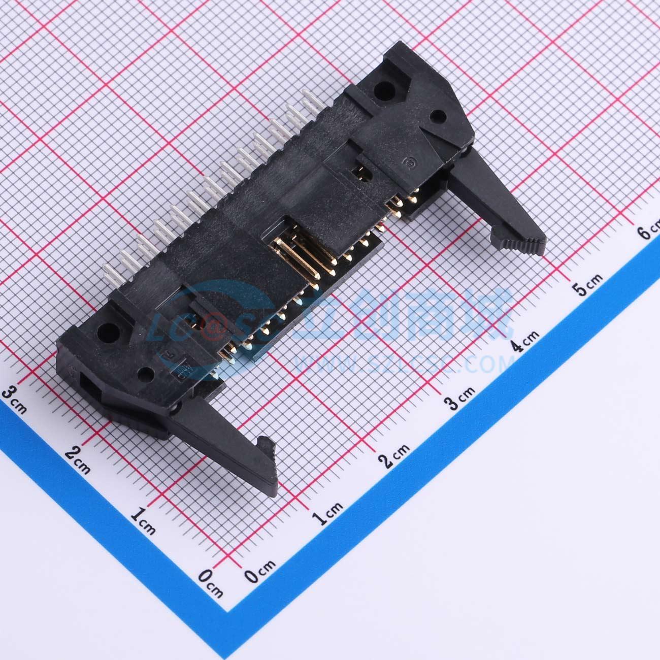 - 线对板连接器,26 位,中心线间距 2.54 mm [.1 in],垂直式,通孔焊接,2 排,AMP-LATCH 通用插头,带状电缆连接器
