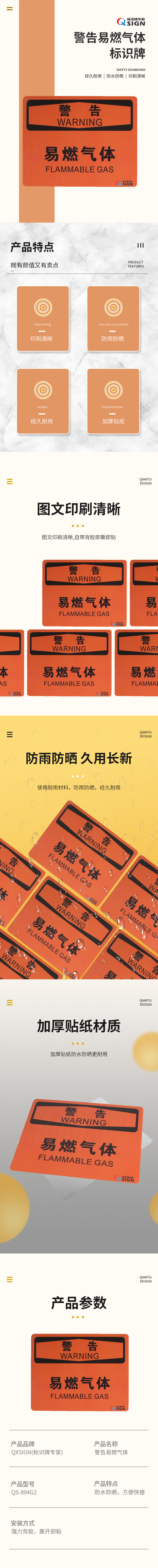 QXSIGN(标识牌专家)OSHA安全标识牌中英文警告易燃气体 QS-894G2