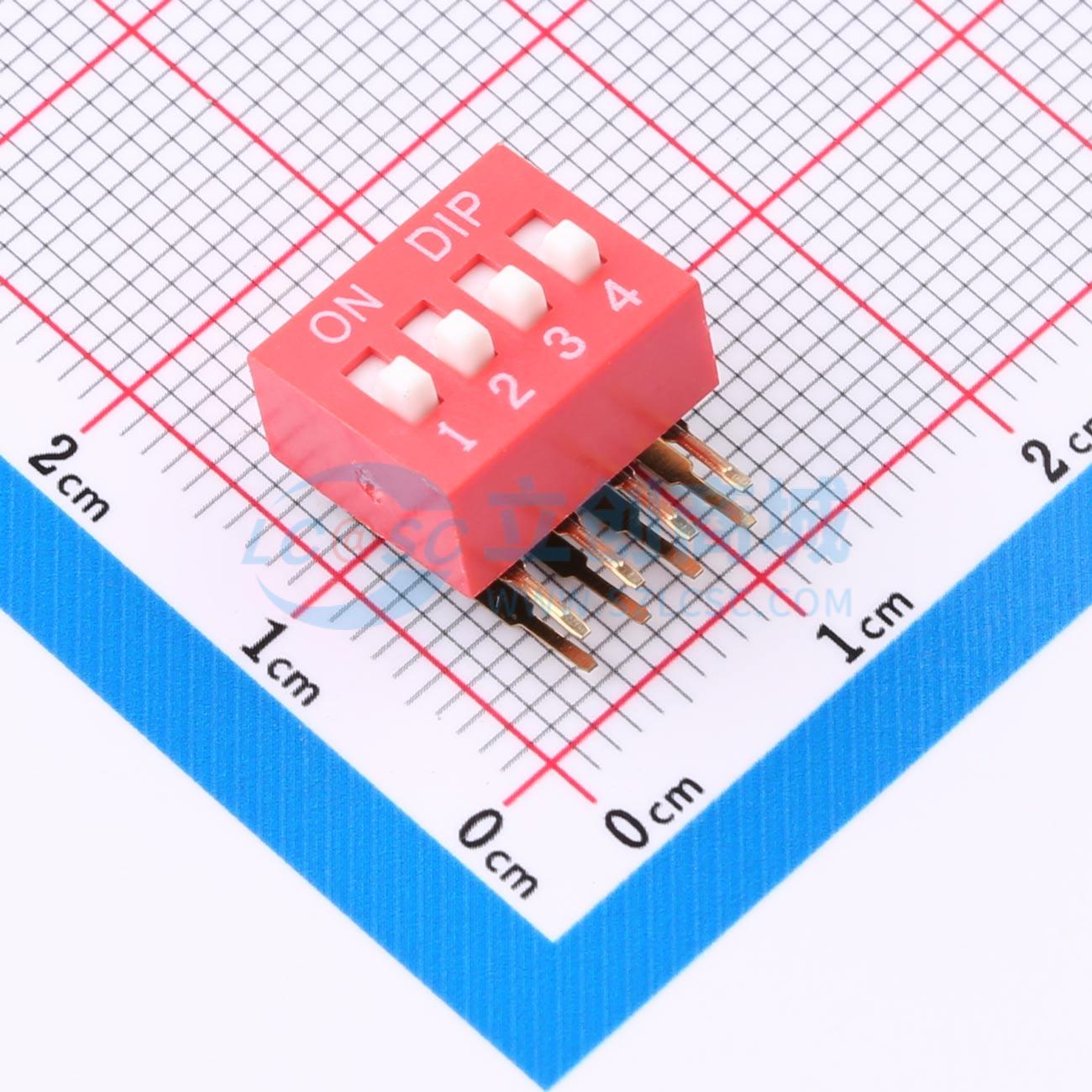 拨码开关红色04P-90度插脚4PIN间距2.54mm立式侧插侧拨4位DIP