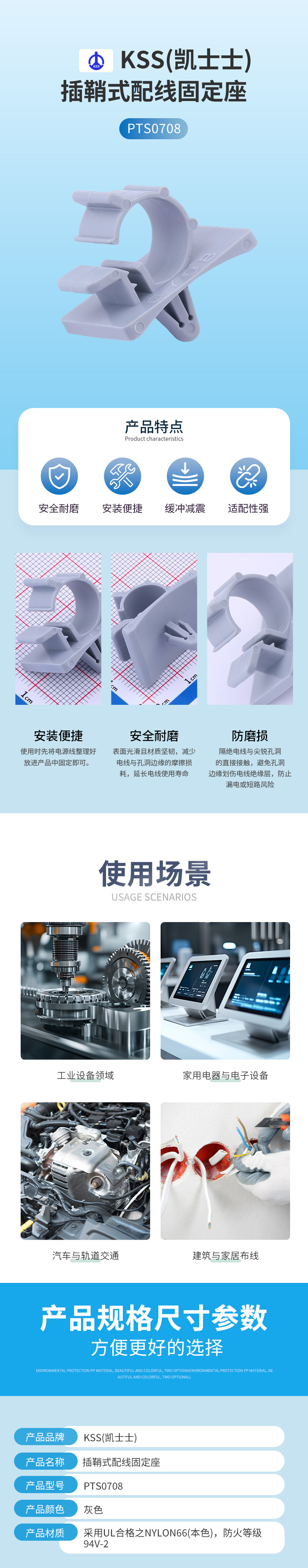 [一整包100个]KSS(凯士士)插鞘式配线固定座 灰色 PTS0708